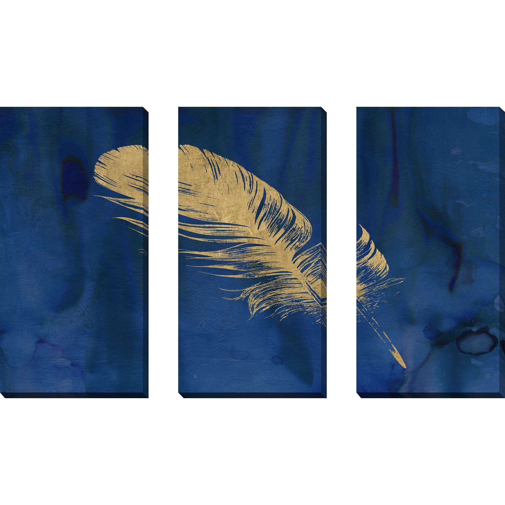 "Golden Feather III" by Carol Robinson 3 Piece Set on Canvas