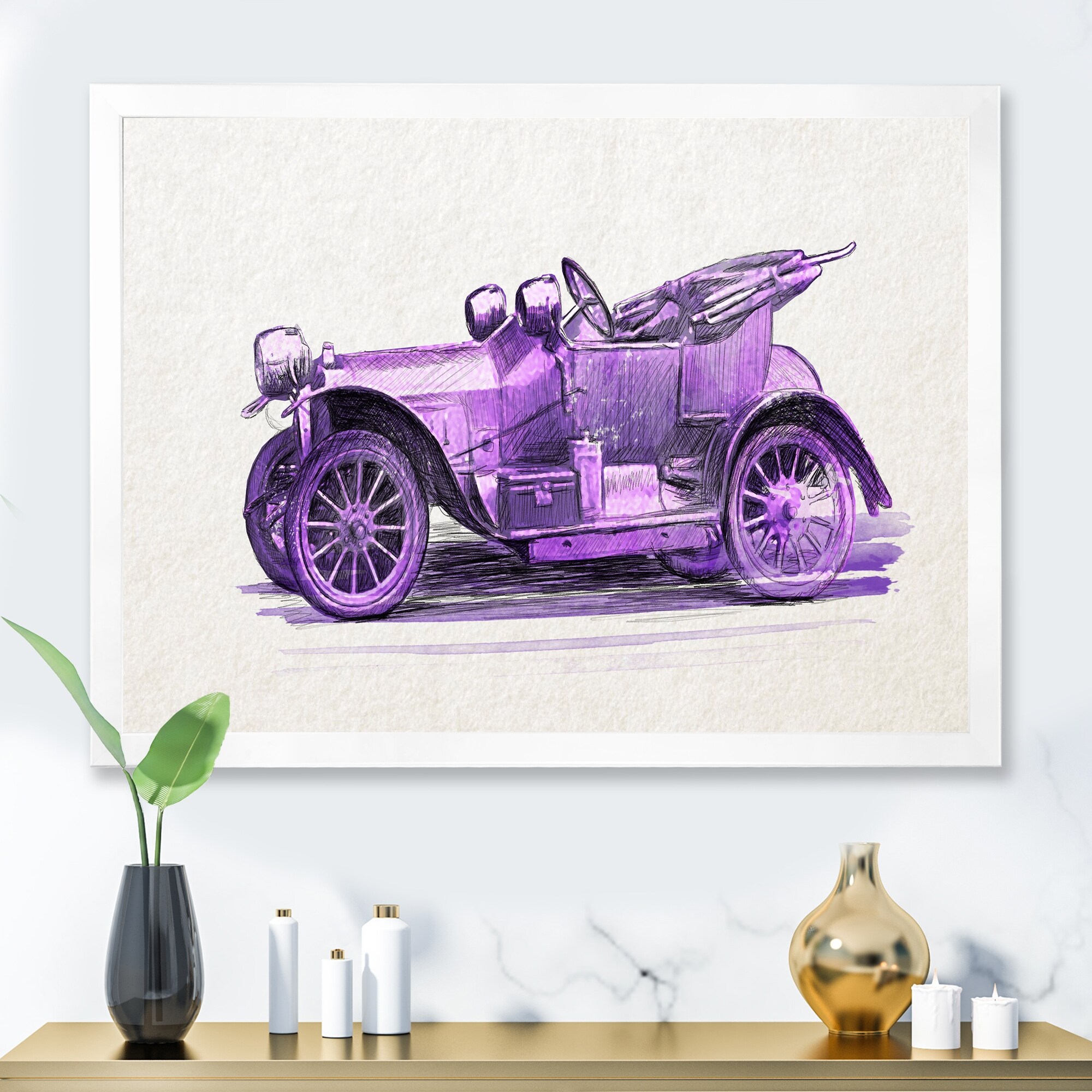 Designart "Purple Vintage Car" Industrial Framed Art Print