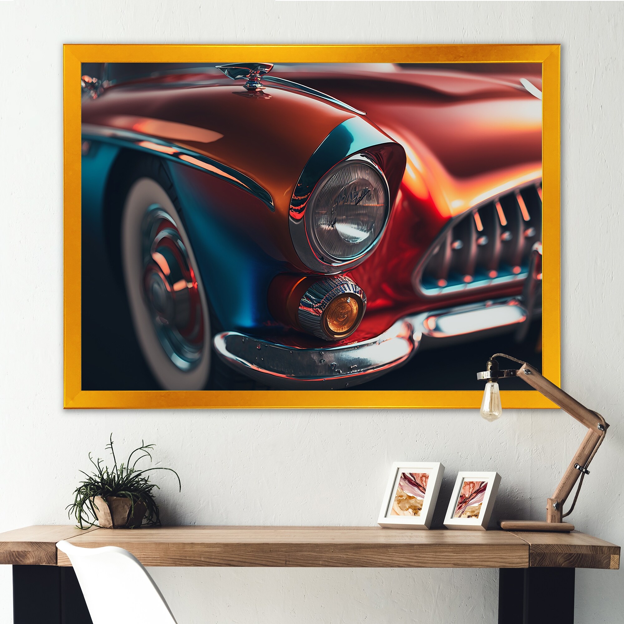 Designart "Vintage Retro Car During Golden Hour IV" Retro Car Framed Canvas Wall Art Print