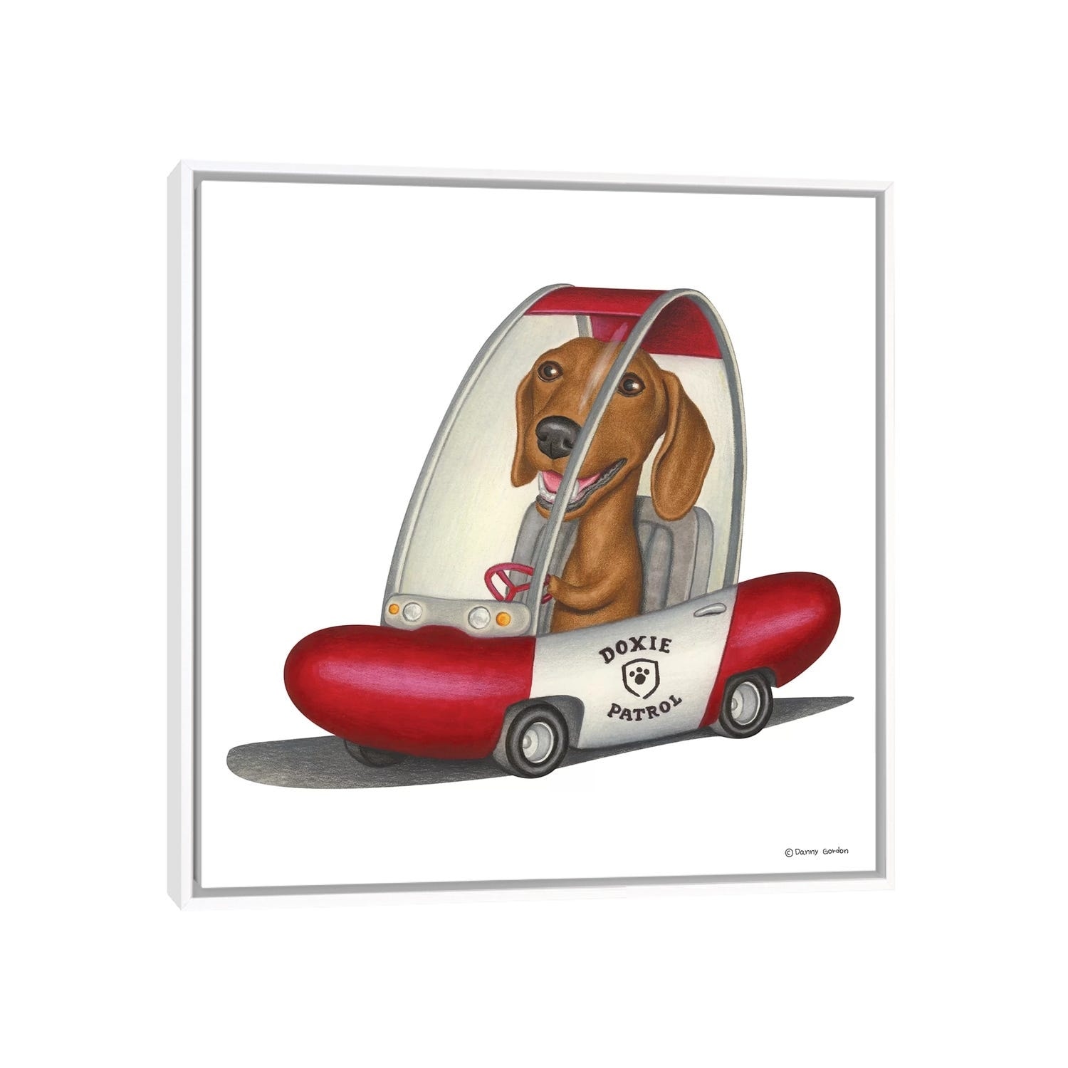 iCanvas "Dachshund Patrol Car" by Danny Gordon Framed Canvas Print