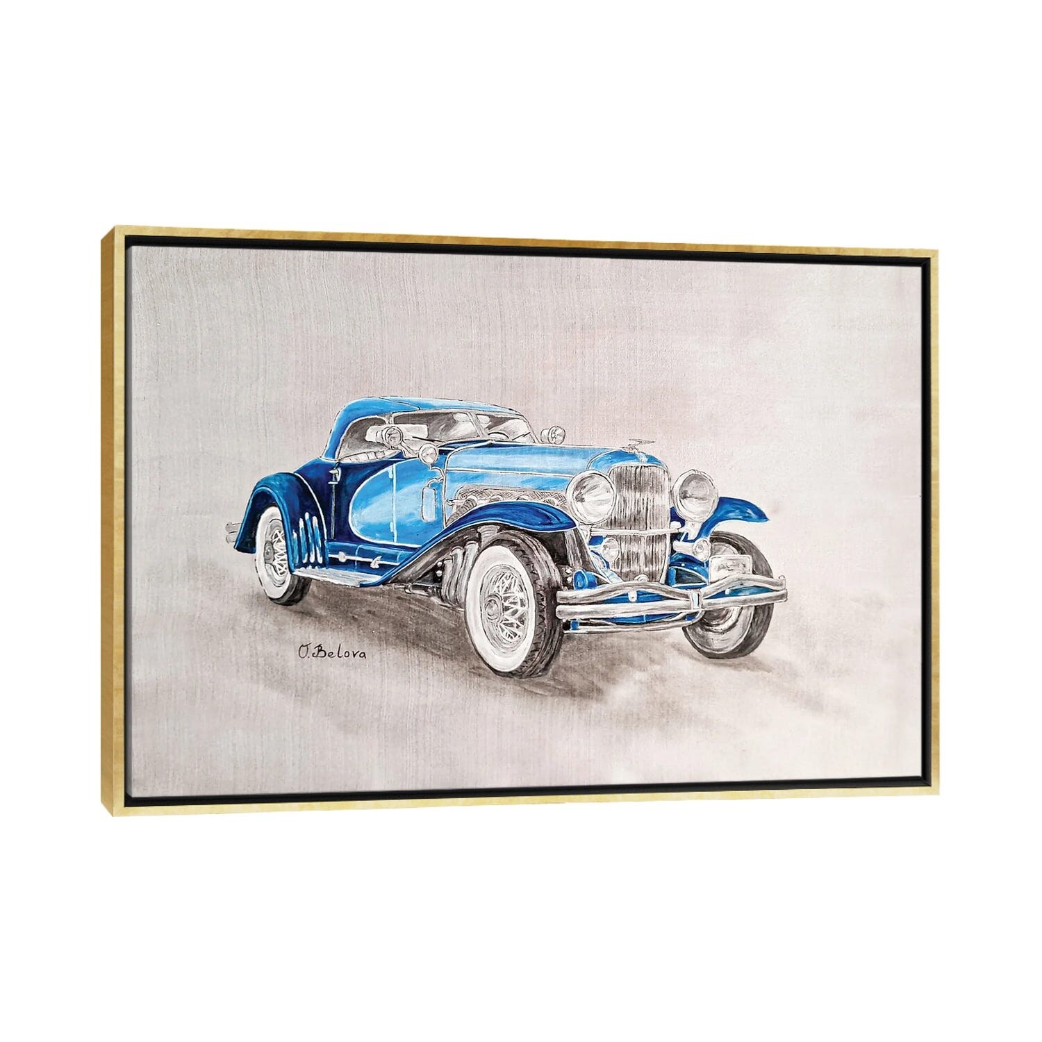 iCanvas "Blue Car II" by Olga Belova Framed|Gold - 18x26