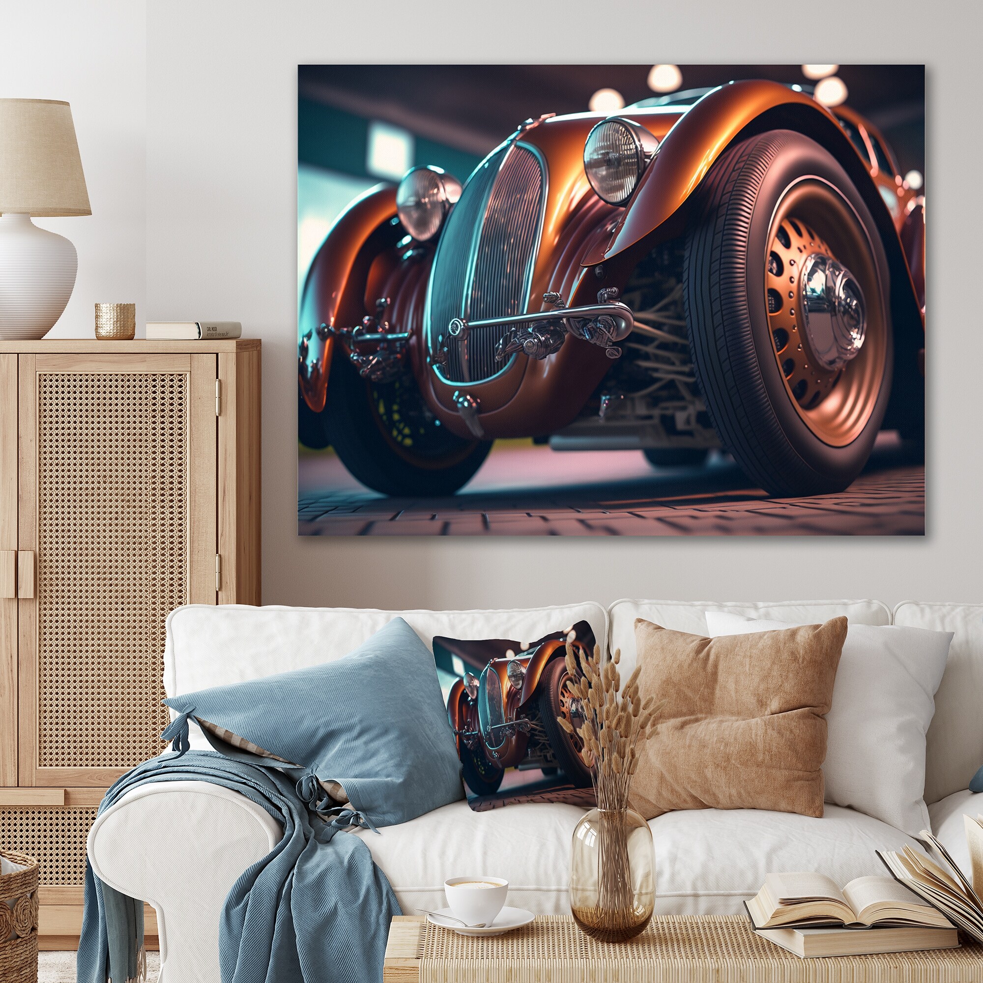Designart "Close-up Of Classic Retro Car III" Retro Car Framed Canvas Wall Art Print