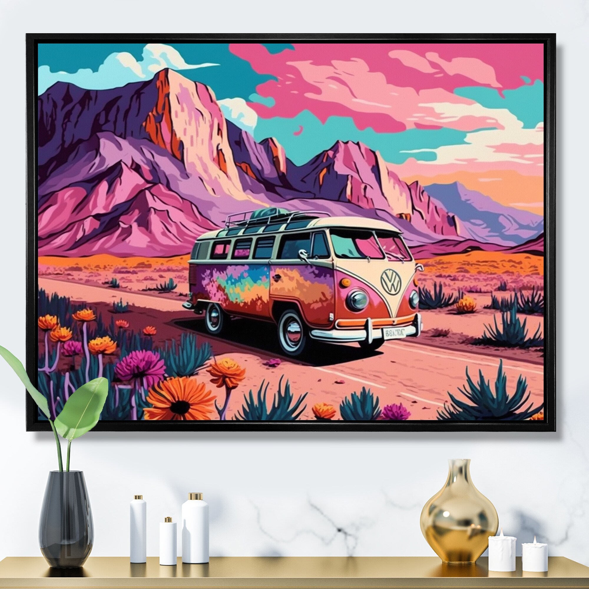 Designart "Vintage Van Roadside Stories I" Retro Car Framed Canvas Print