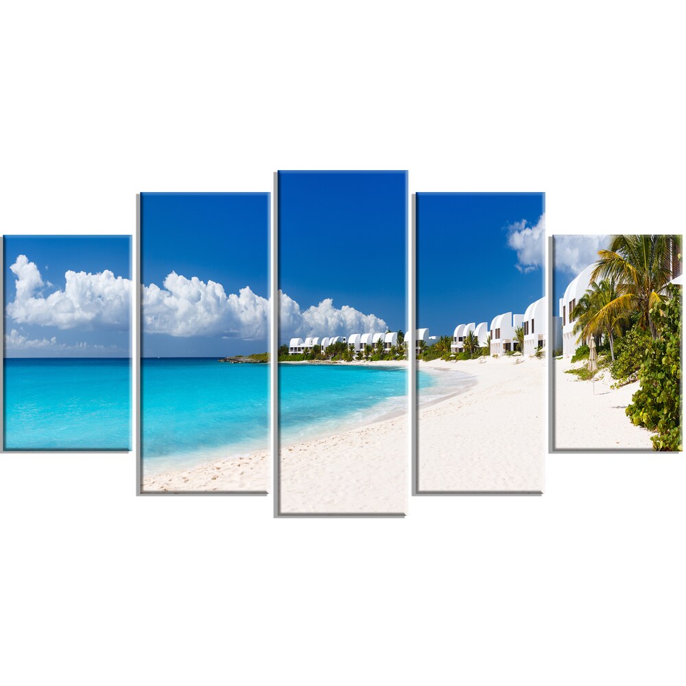 Designart - Caribbean Beach Panorama -5 Panels Canvas Art