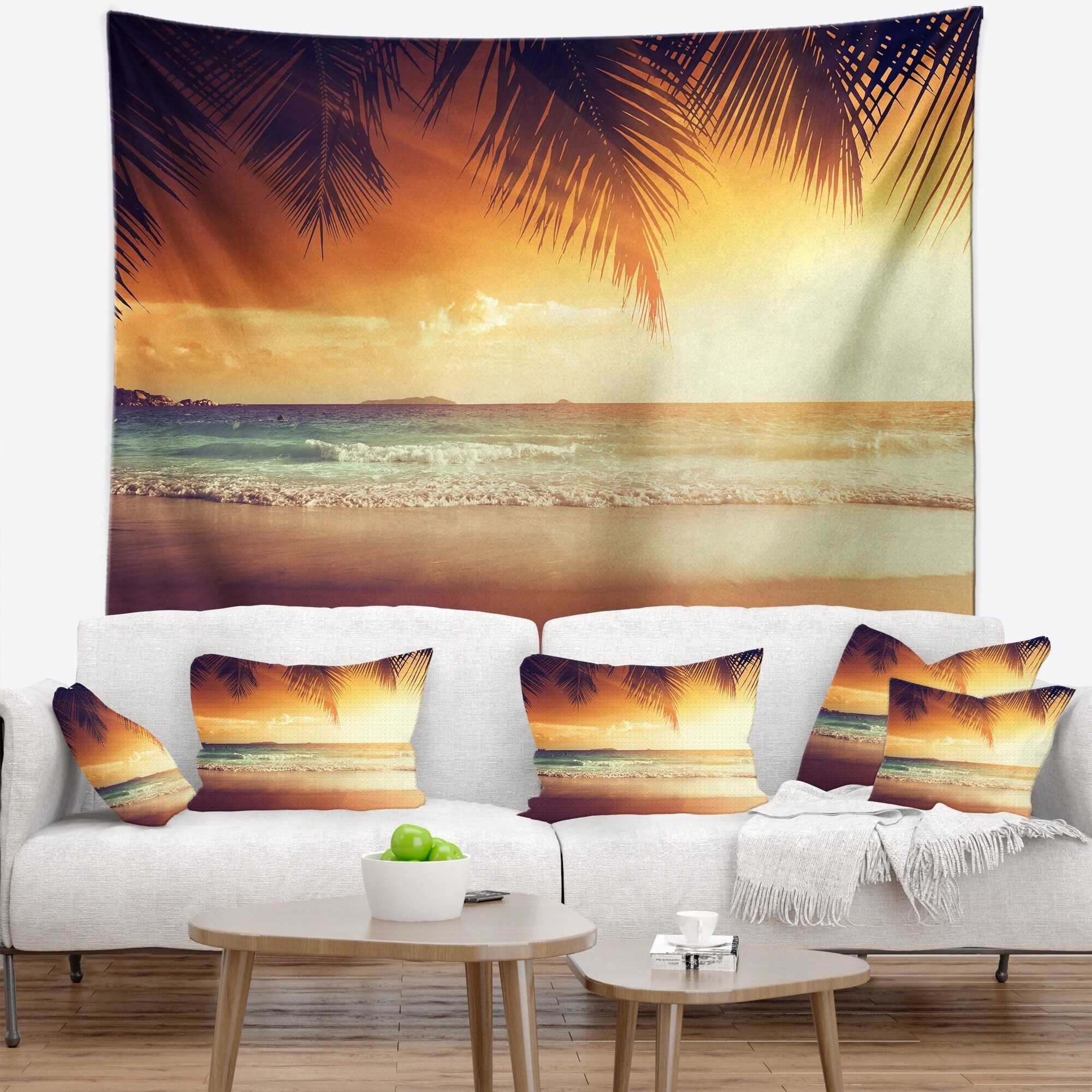 Designart 'White Caribbean Beach with Palms' Landscape Wall Tapestry