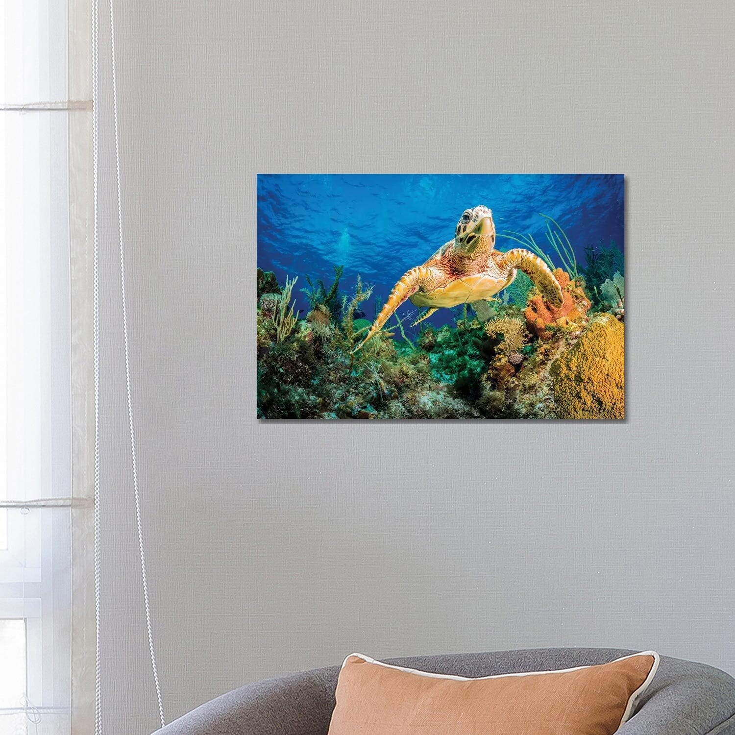 iCanvas "Hawksbill Turtle Swimming Through Caribbean Reef" by Jan Abadschieff Canvas Print