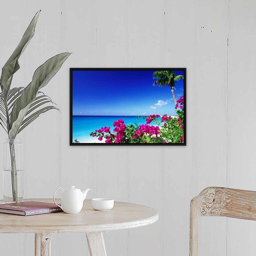 "Caribbean, St. Martin, Bougainvillea" Black Float Frame Canvas Art