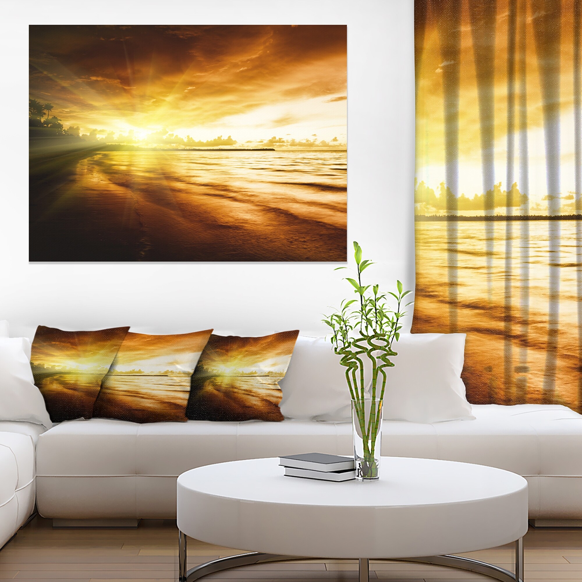 Designart "Caribbean Beach Sunrise" Landscape Photo Framed Canvas Art Print