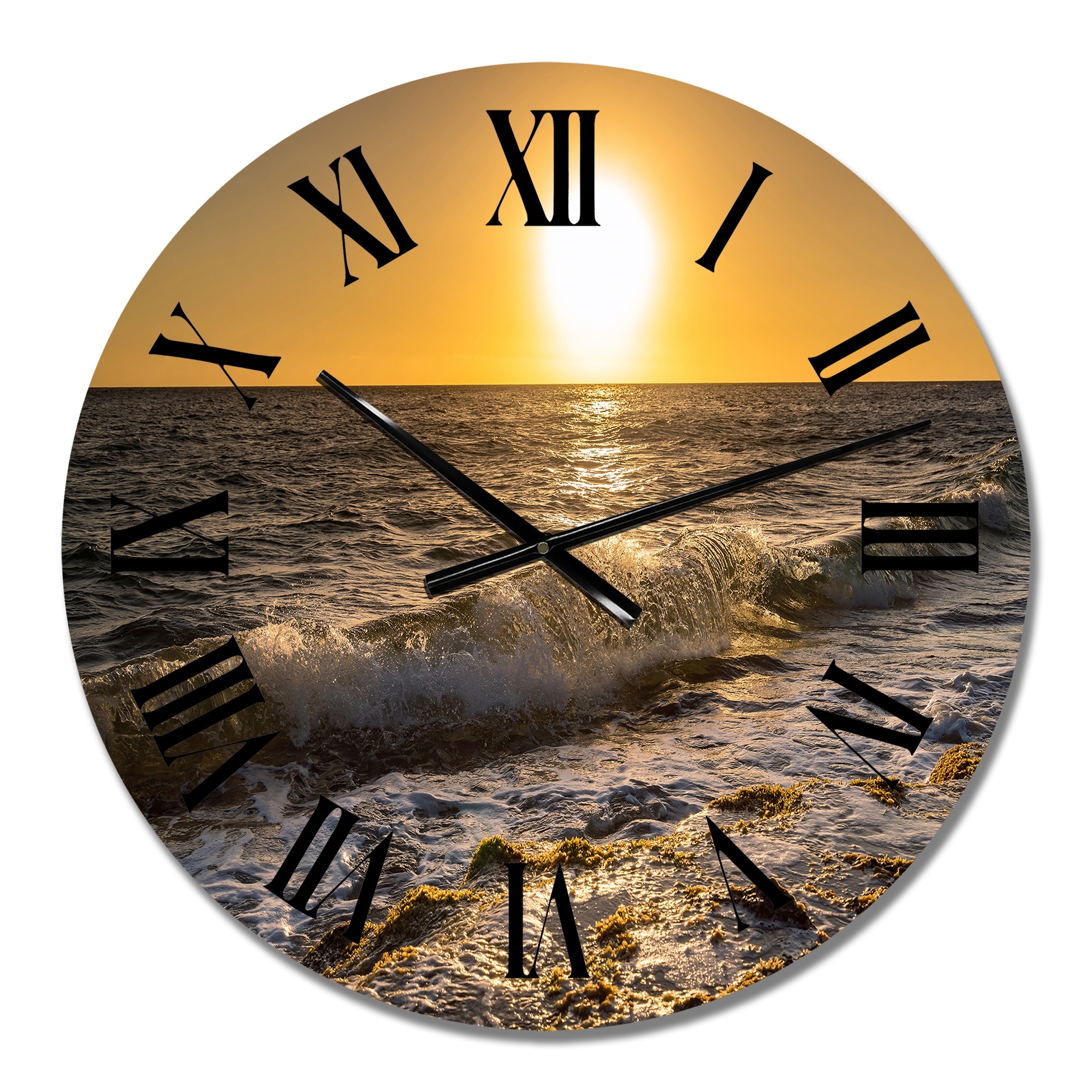 Designart 'Tropical Caribbean Island Sunset II' Nautical & Coastal wall clock