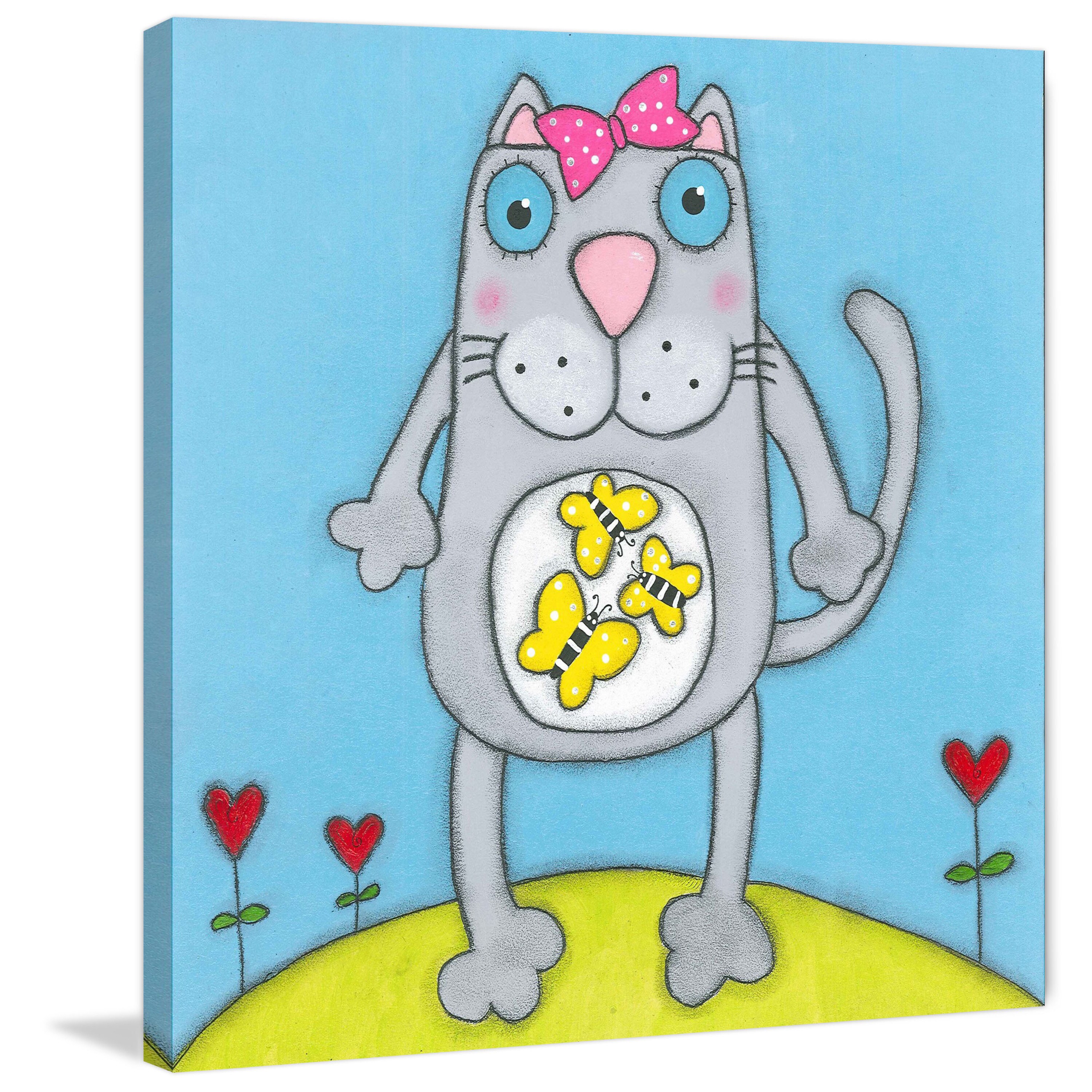 Marmont Hill - Handmade Cat with Ribbon Print on Wrapped Canvas
