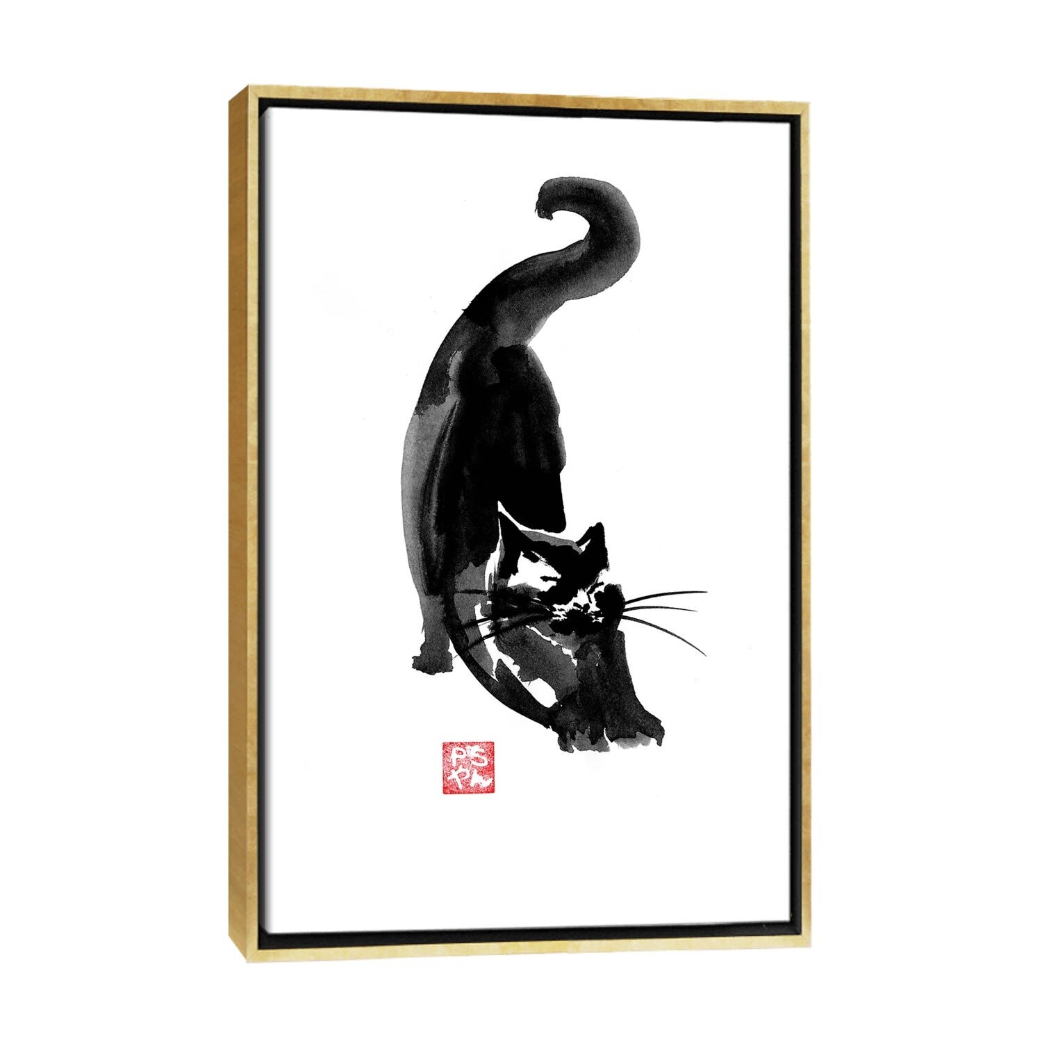 iCanvas "Stretching Cat" by Pechane Framed Canvas Print
