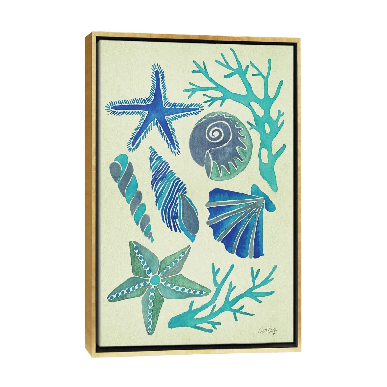 iCanvas "Blue Seashells" by Cat Coquillette Framed