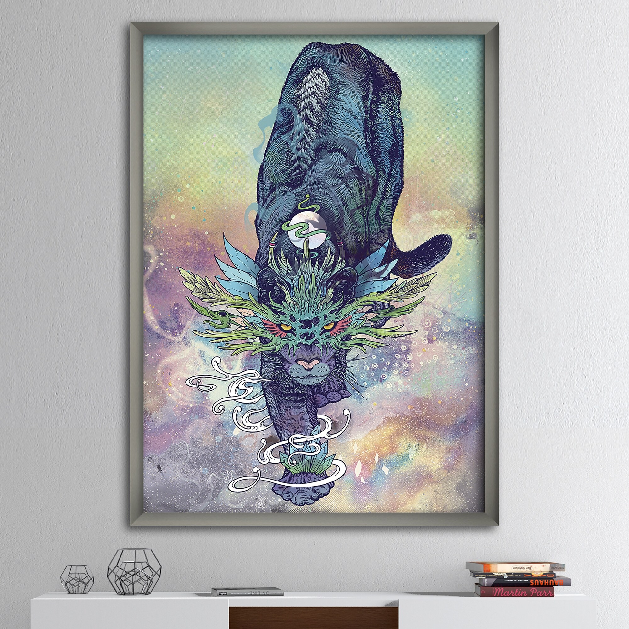 Designart "Spectral Cat" Modern & Contemporary Premium Framed Art Print