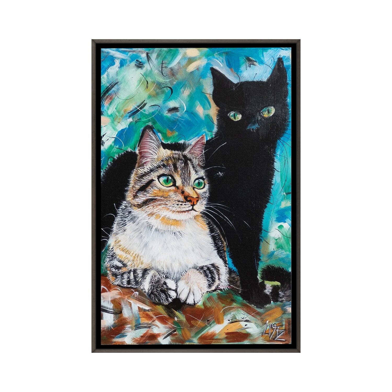 iCanvas "Black And Tabby Cat" by Charlotte Bezant Framed