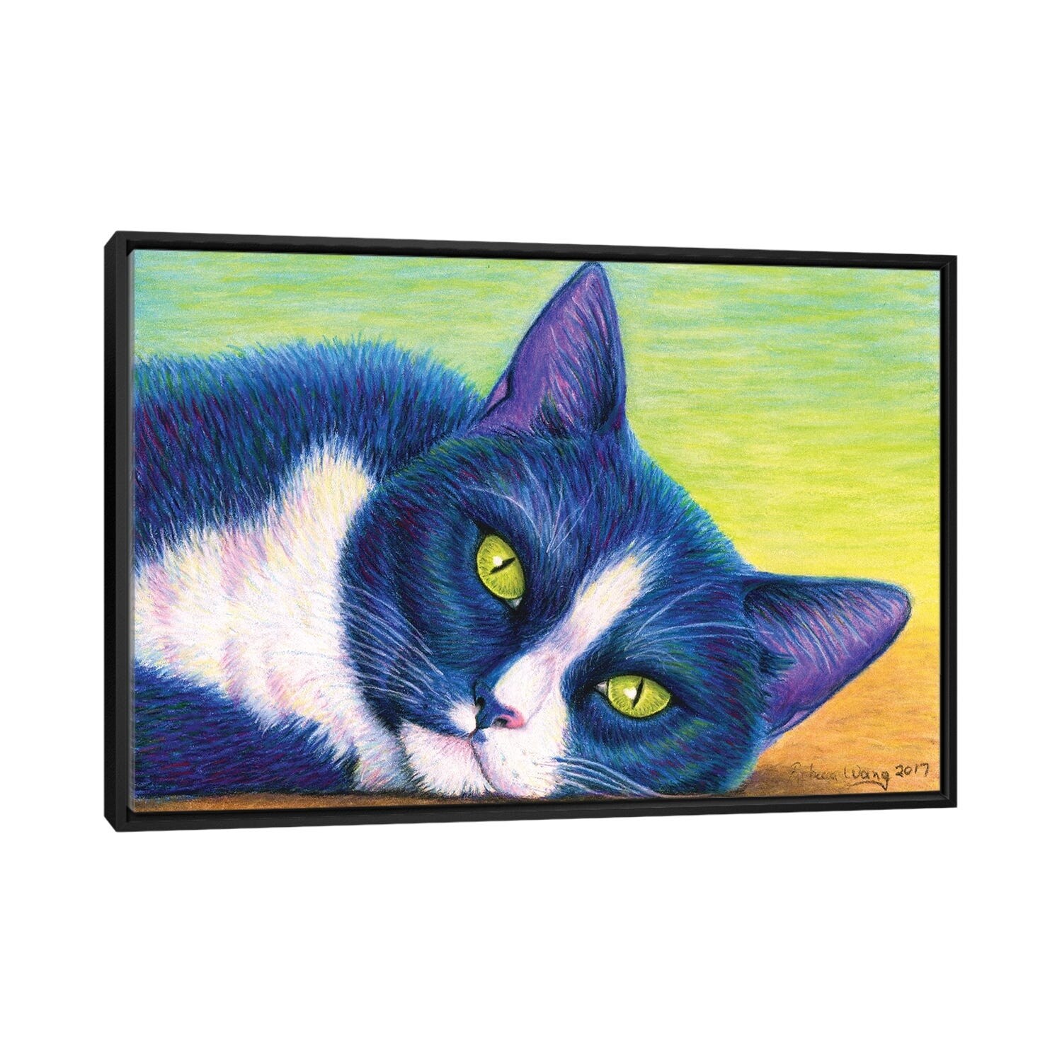 iCanvas "Colorful Tuxedo Cat" by Rebecca Wang Framed Canvas Print