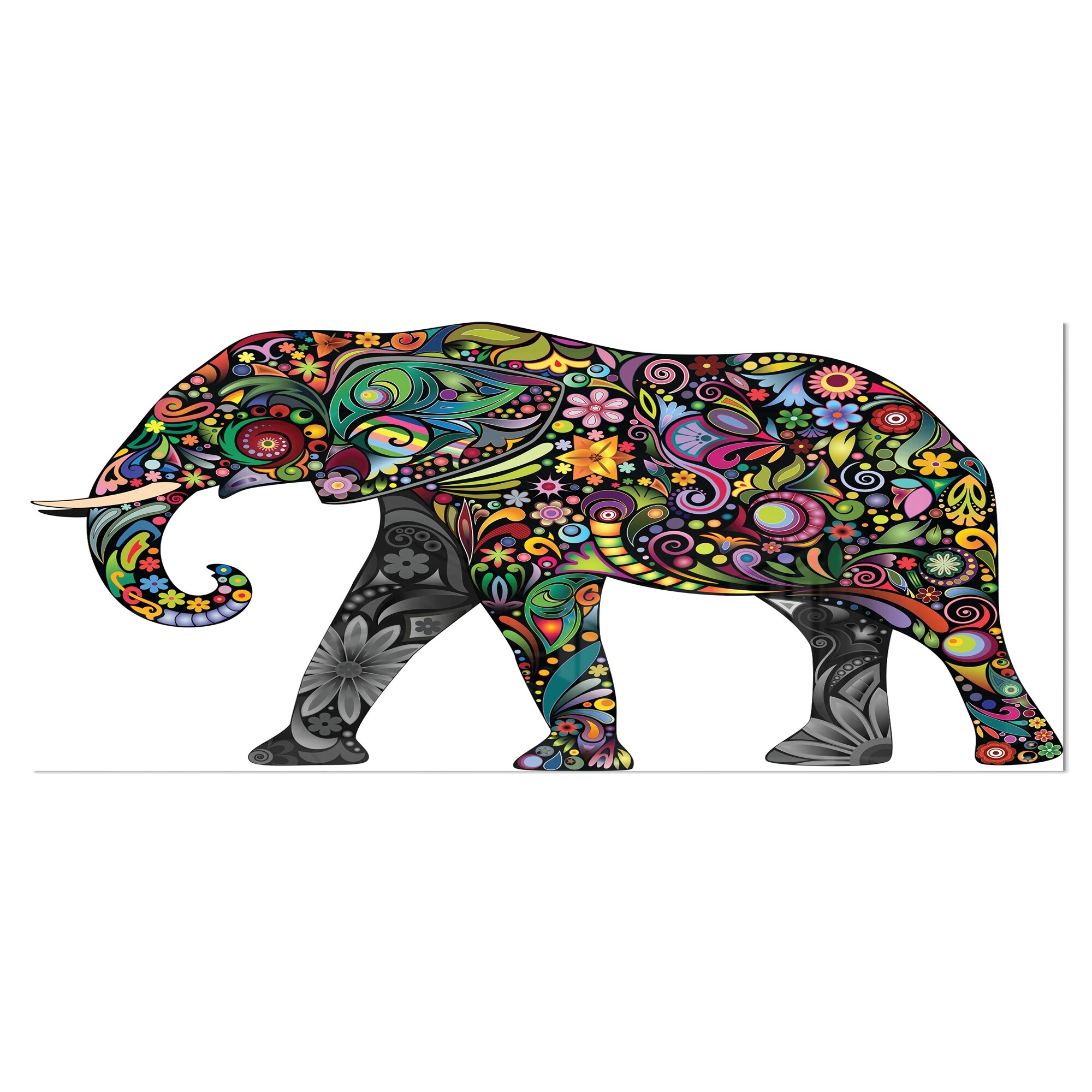 Designart 'Floral Cheerful Elephant' Animal Digital Art Metal Wall Art