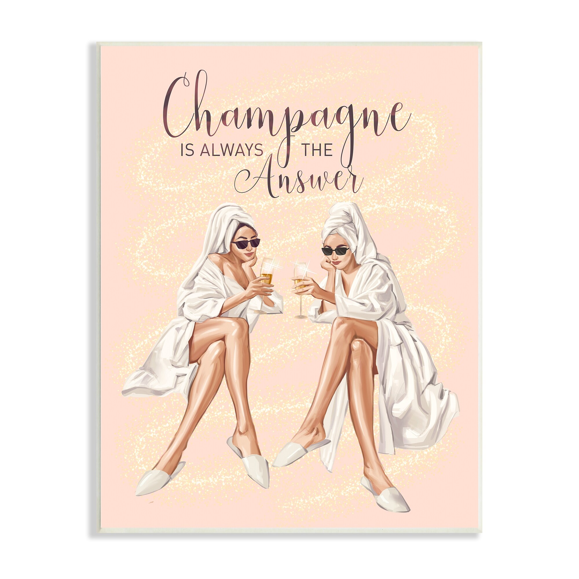 Stupell Champagne Typography Quote Pink Glam Robes Cheers Wood Wall Art - Brown