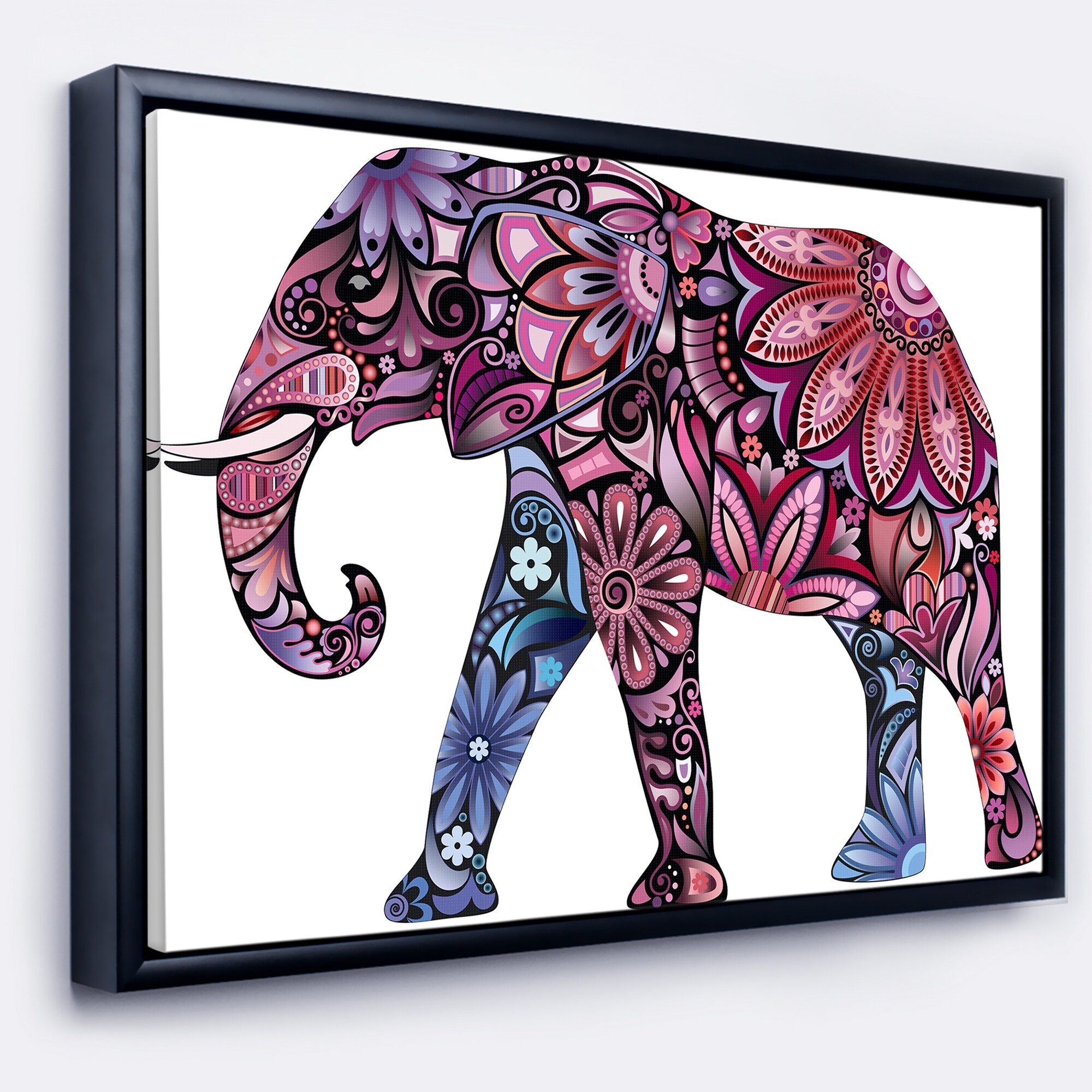 Designart "Purple Cheerful Elephant" Animal Framed Canvas Art Print