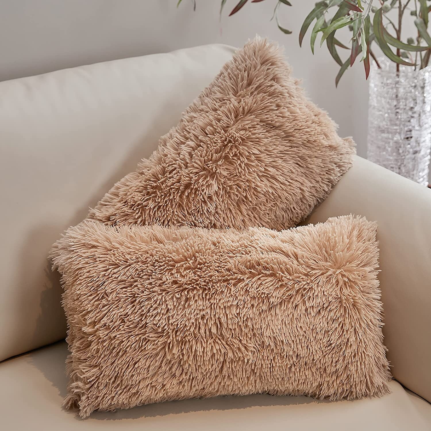 Cheer Collection 12"x20" Shaggy Long-hair Throw Pillows (Set of 2)