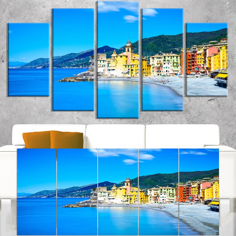 Camogli Church on Sea and Beach View - Extra Large Seashore Canvas Art