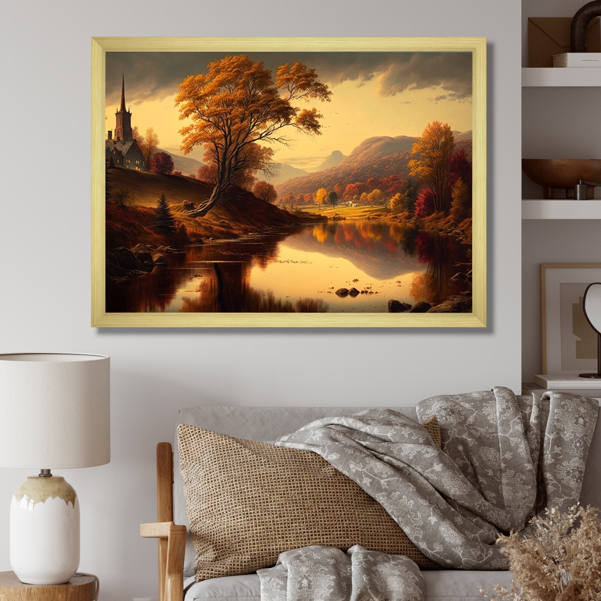 Designart "Charming Church in the Autumn Mountains II" Landscape Church Framed Canvas Art Print