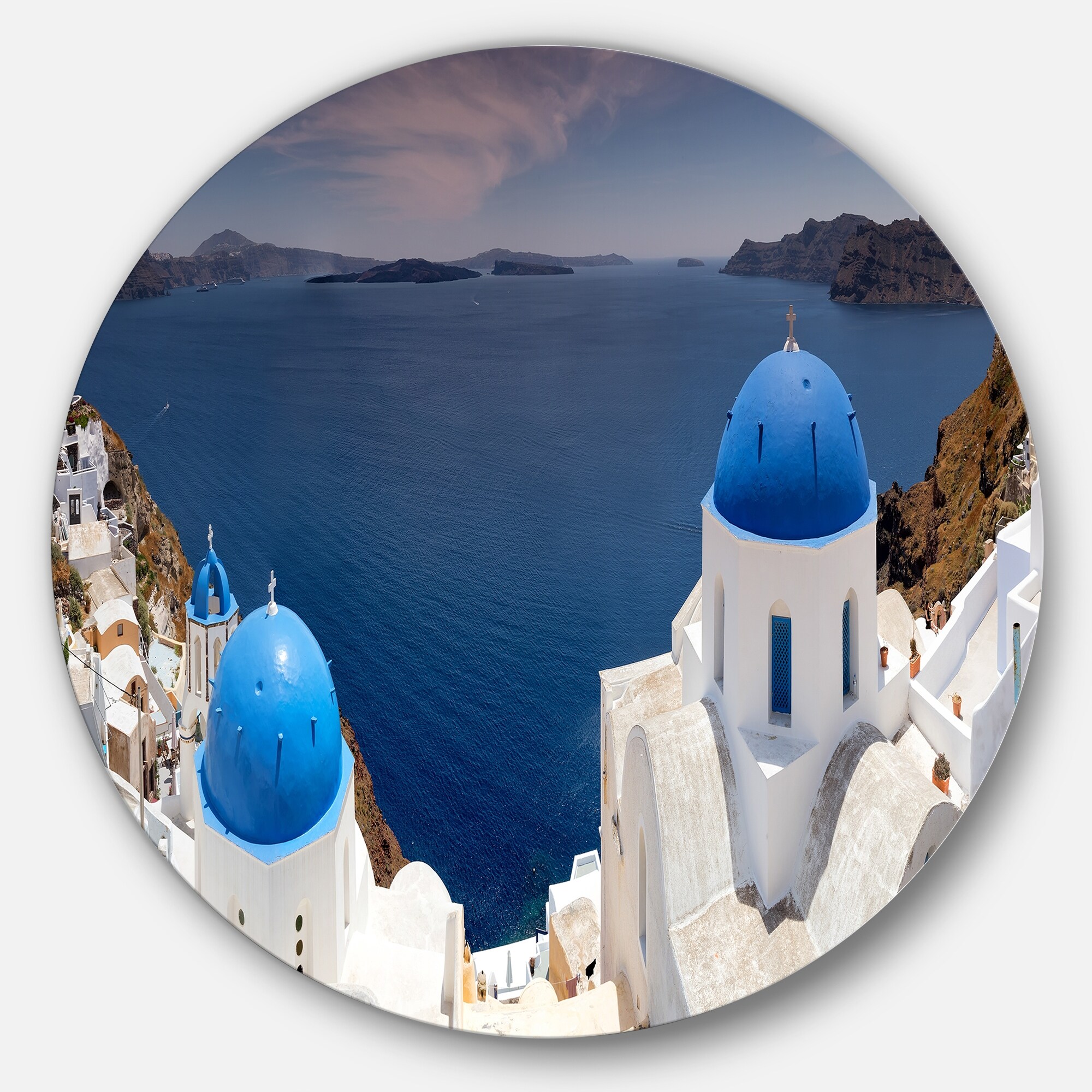 Designart 'Blue Doomes Churches Panorama' Landscape Circle Wall Art