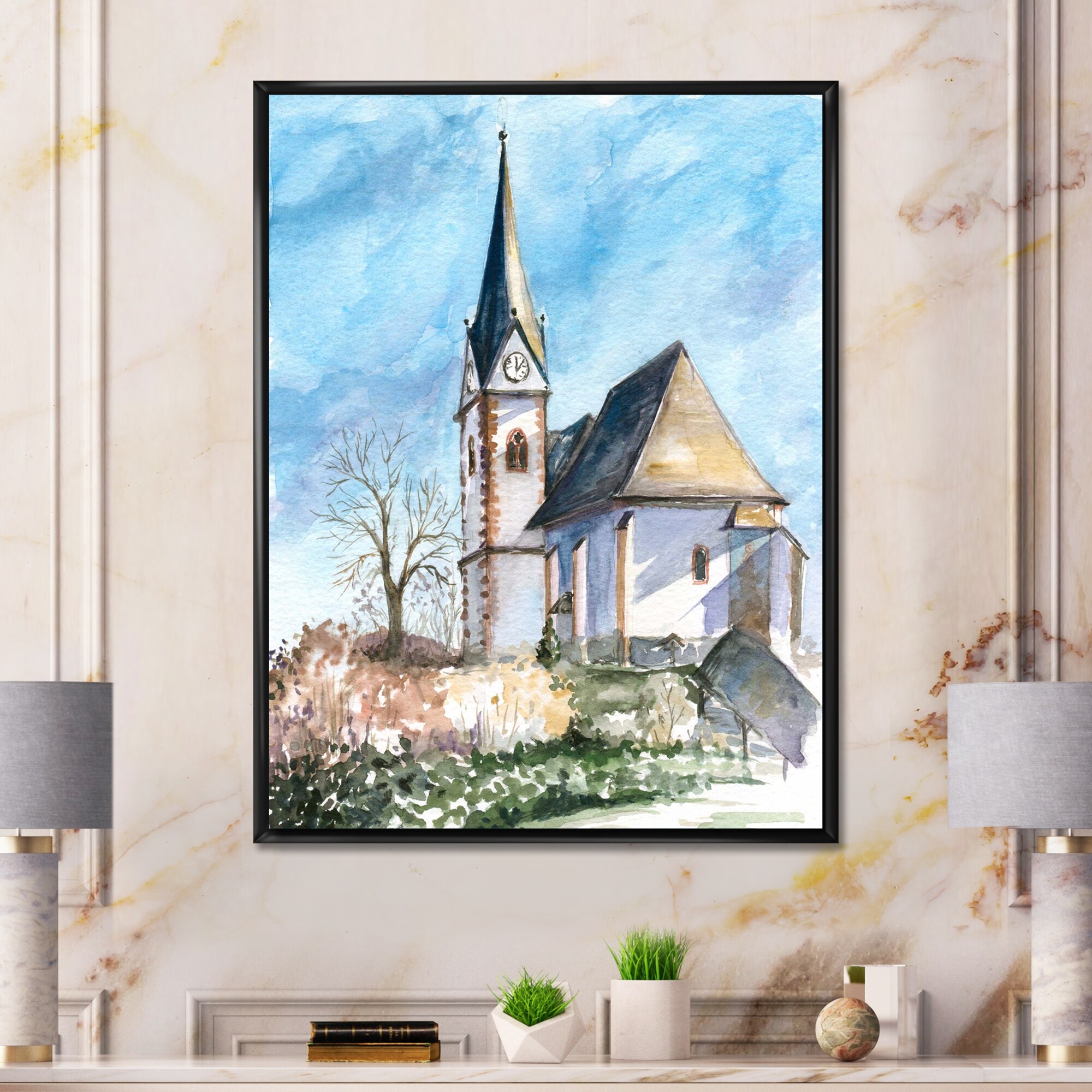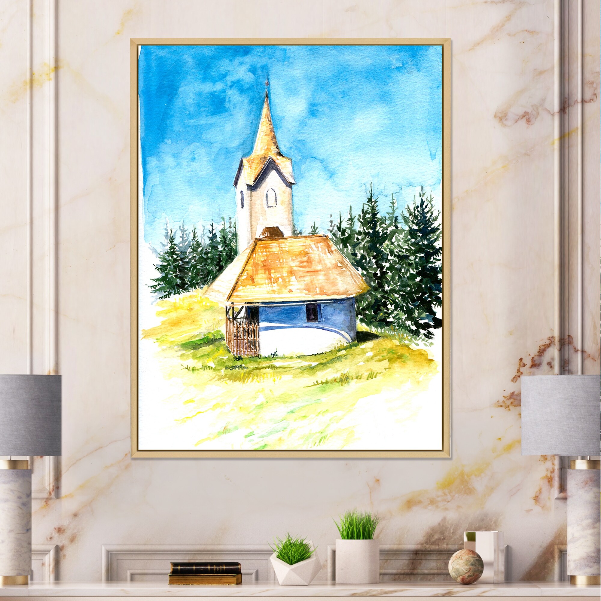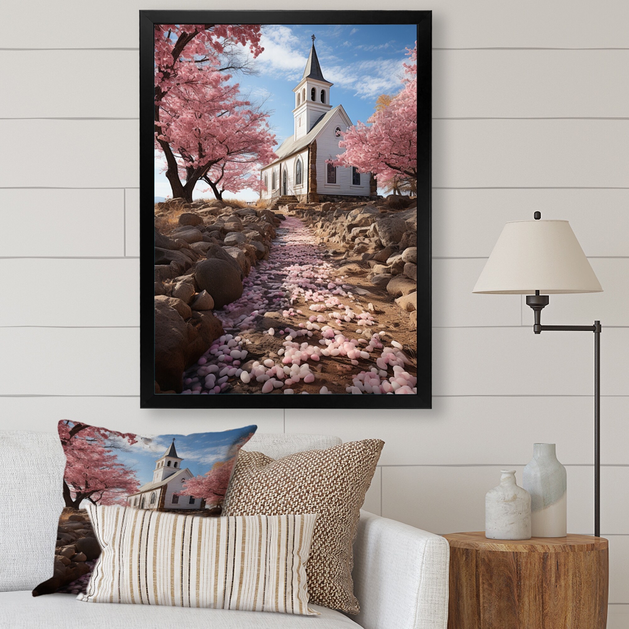 Designart "Lansdcape Church Tranquil Abode I" Landscape Church Framed Canvas Prints