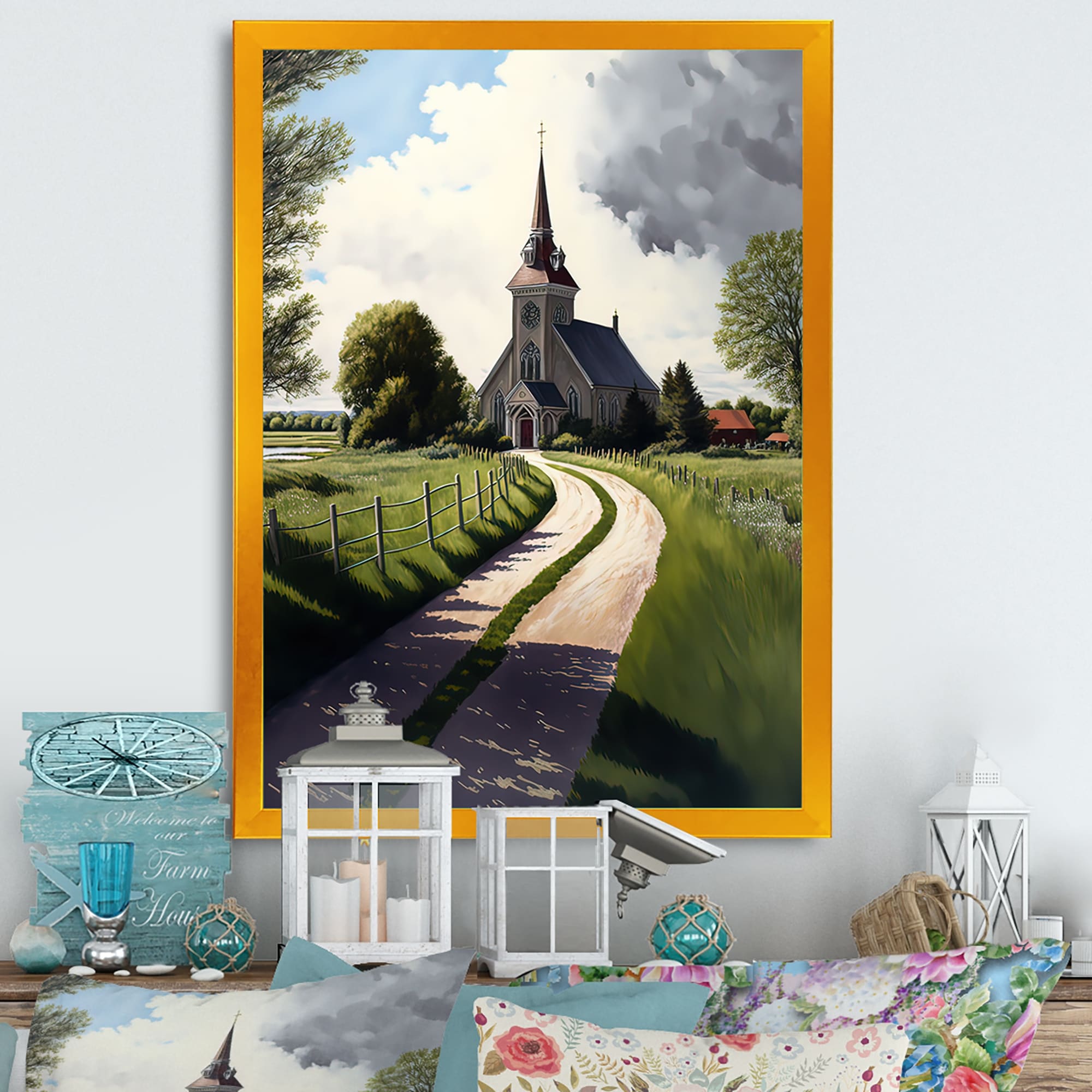 Designart "Lansdcape Church Tranquil Abode I" Landscape Church Wall Decor