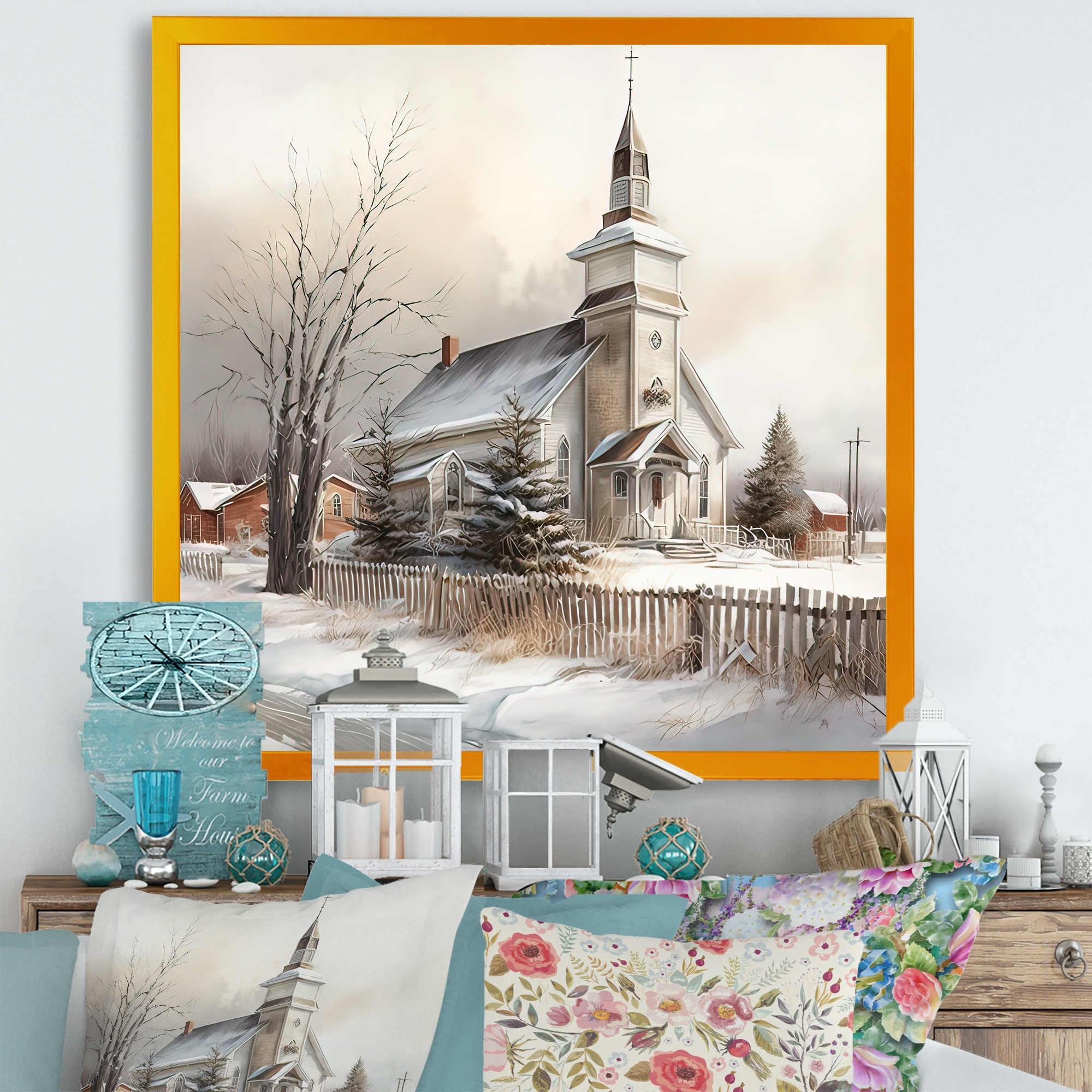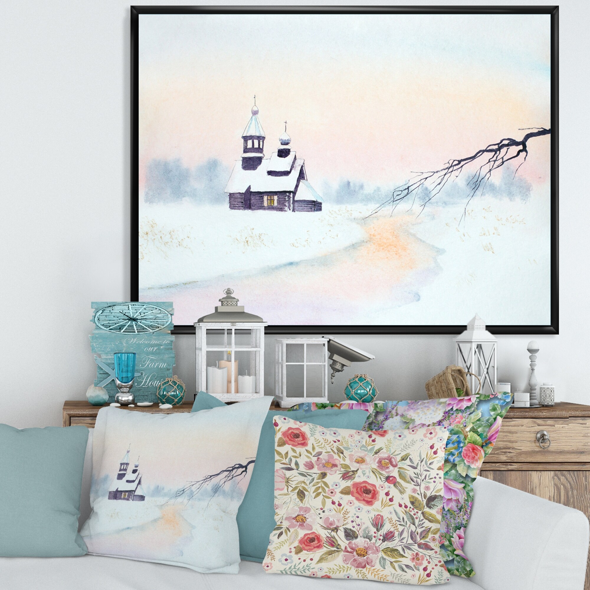 Designart "Church In Country During Winter IV" Spiritual Framed Art Print