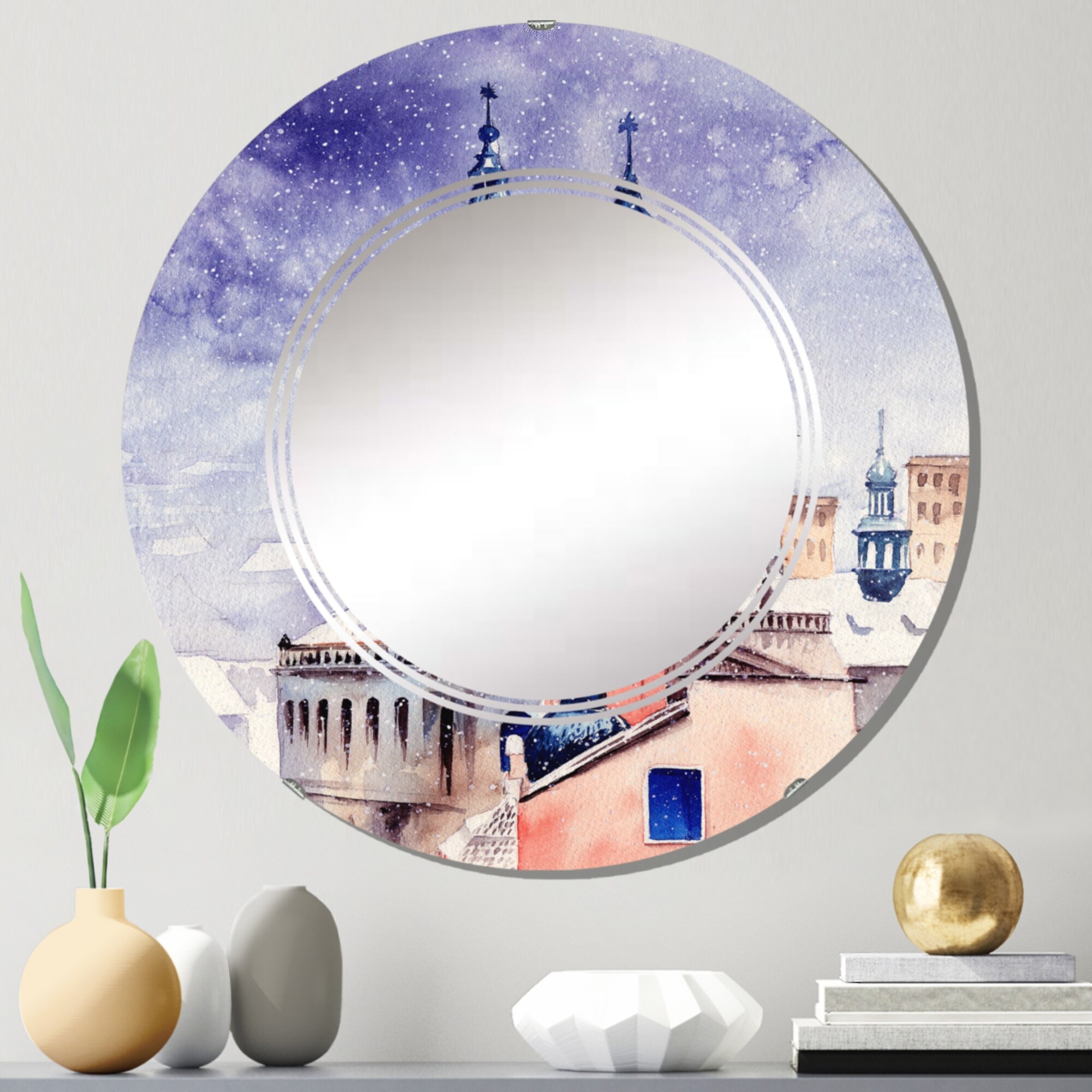 Designart 'Saint Nicholas Church in Prague in Winter' Printed French Country Wall Mirror