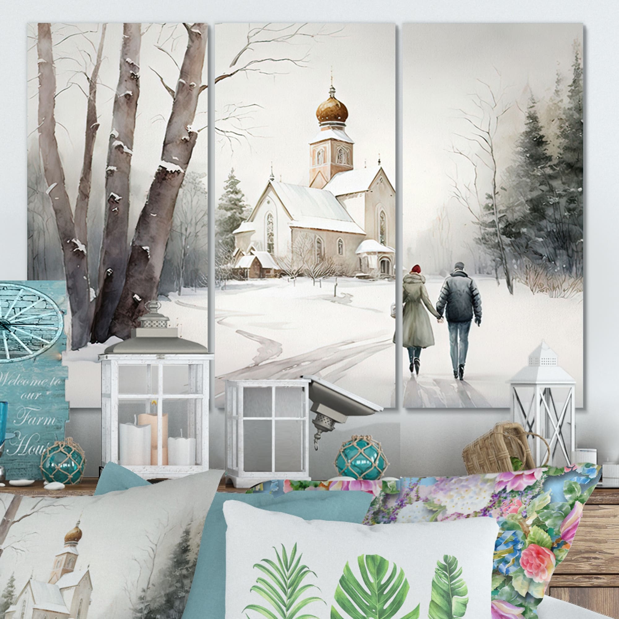 Designart "Couple In Love Going to the Church III" Spiritual Canvas Wall Art - 3 Panels