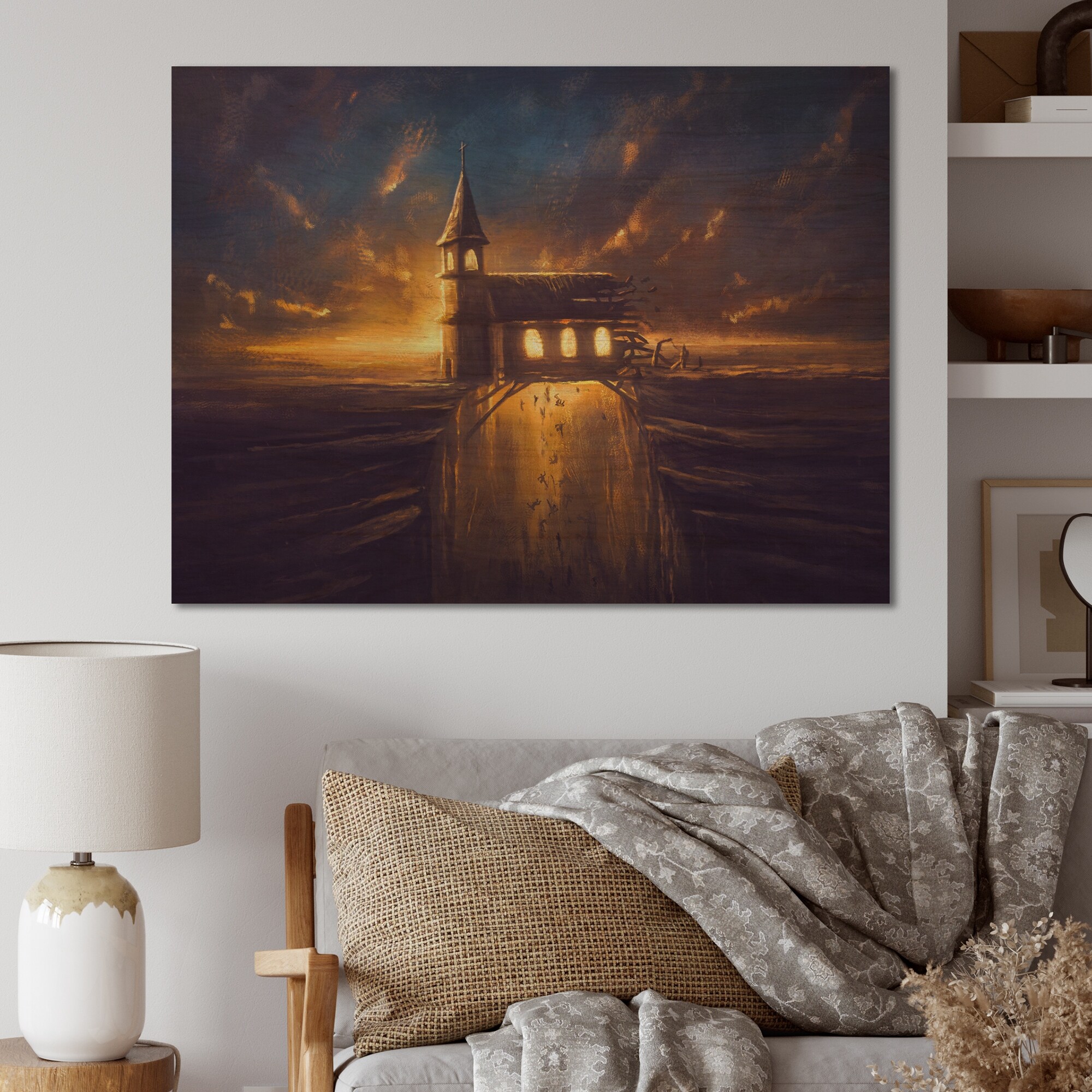 iCanvas "Sundown Church" by Sebastian Hilgetag Framed|Gold