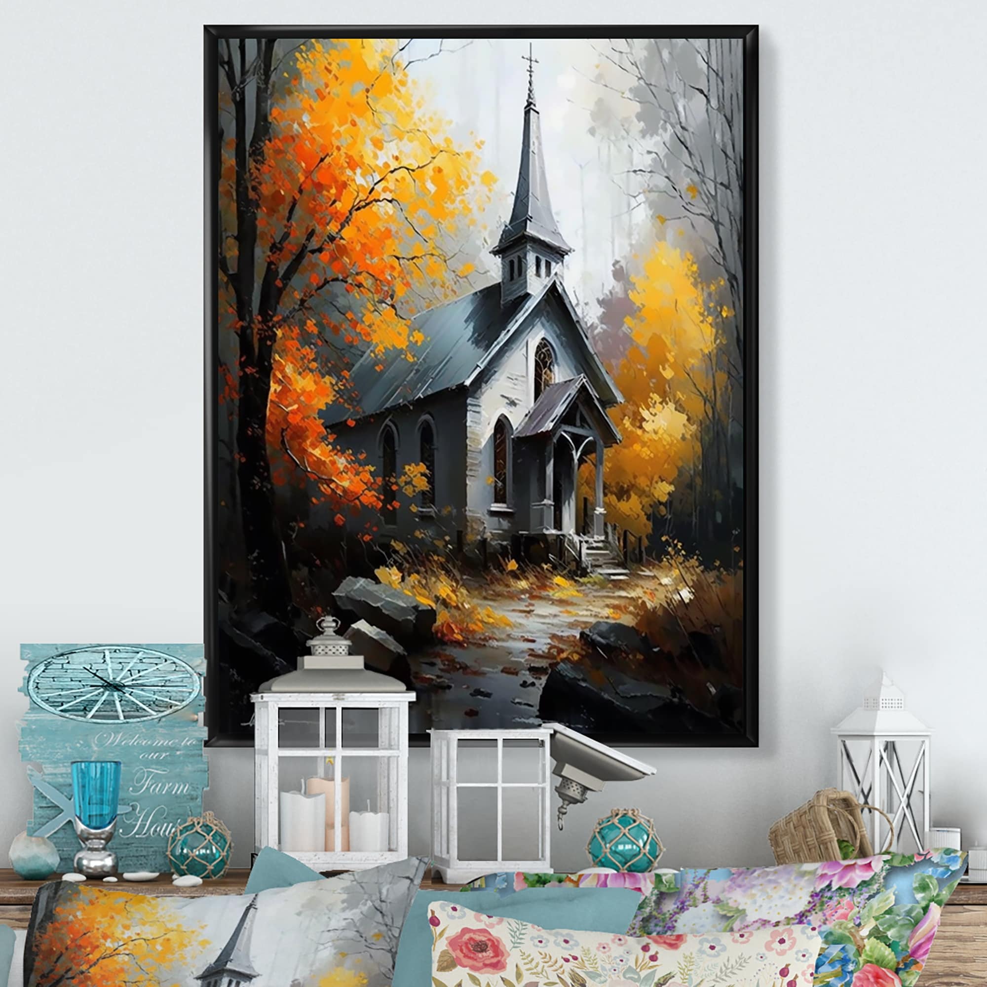 Designart "Church In Forest in Autumn II" Spiritual Framed Canvas Art Print