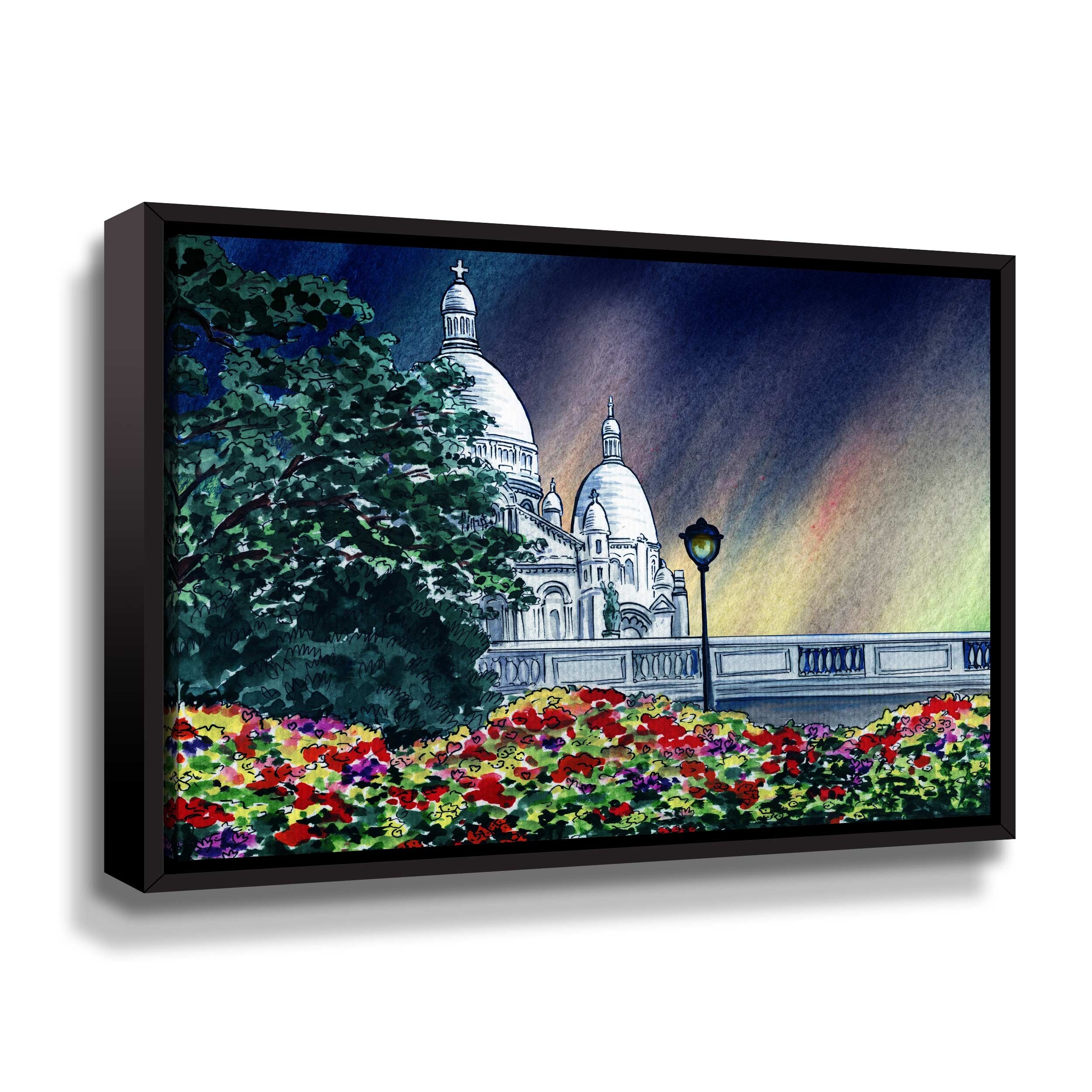 Sacre Coeur Church Night in Paris Montmartre France by Irina Sztukowski Gallery Wrapped Floater-framed Canvas