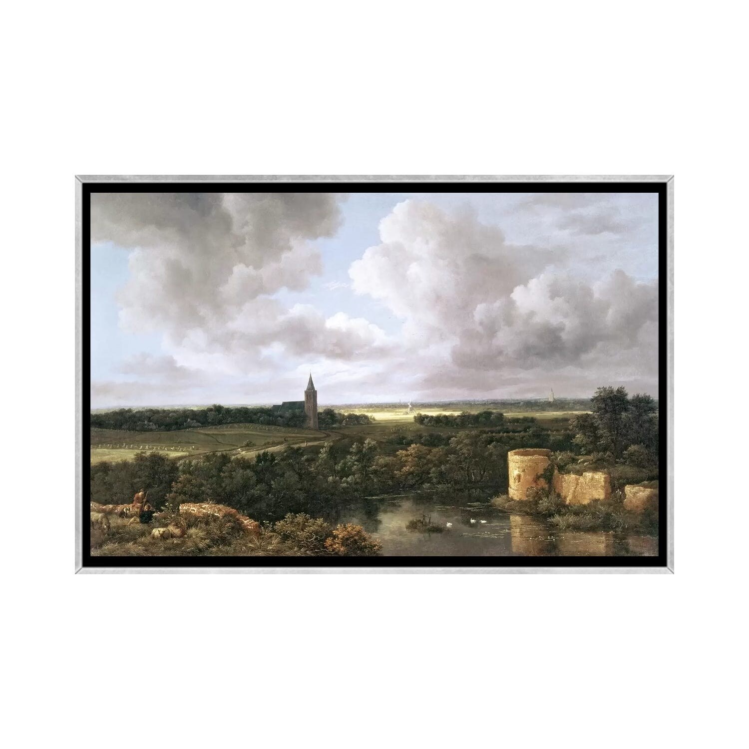 iCanvas "Landscape with Ruined Castle and Church, c.1665-70 " by Jacob Isaacksz van Ruisdael Framed