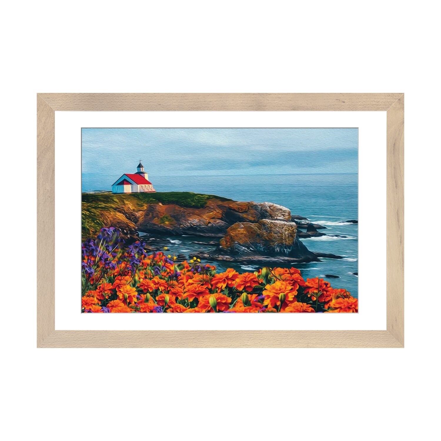 iCanvas "Church On A Rock By the Sea, View From A Blooming Meadow" by Ievgeniia Bidiuk