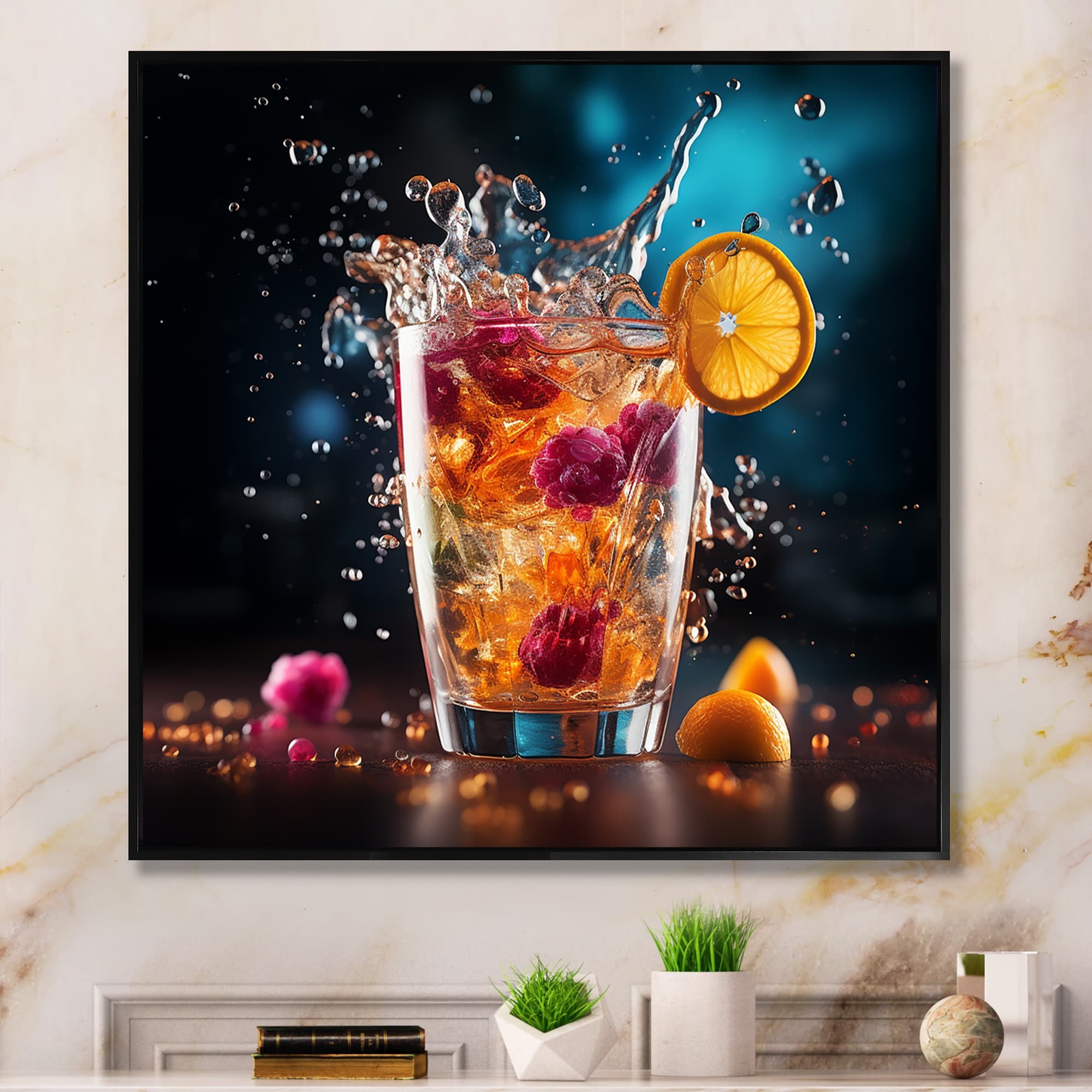 Designart "Cocktails Cocktail Confetti VII" Cocktails Framed Canvas Print