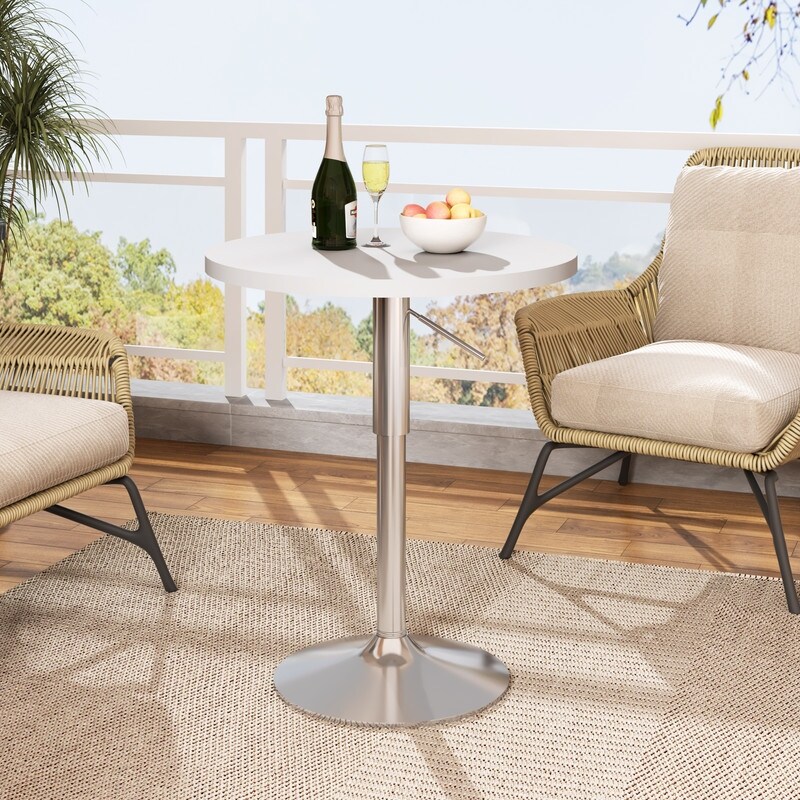 Grondin Modern Style Height Adjustable Round Pub Table Swivel Top Cocktail Table with Pedestal Metal Base for Home Bar Bistro