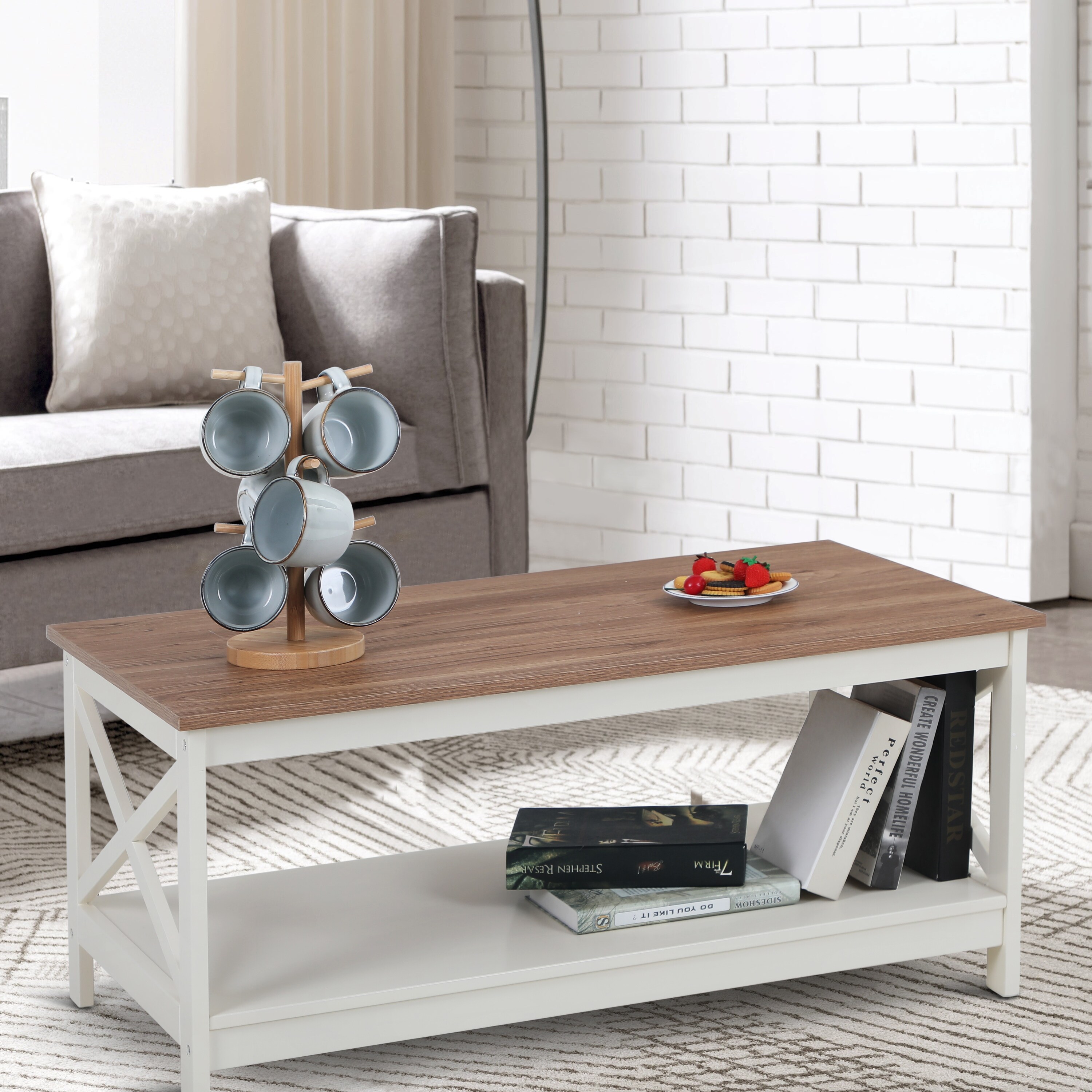 Sophia & William Coffee Table Rustic Cocktail Table with Storage Shelf