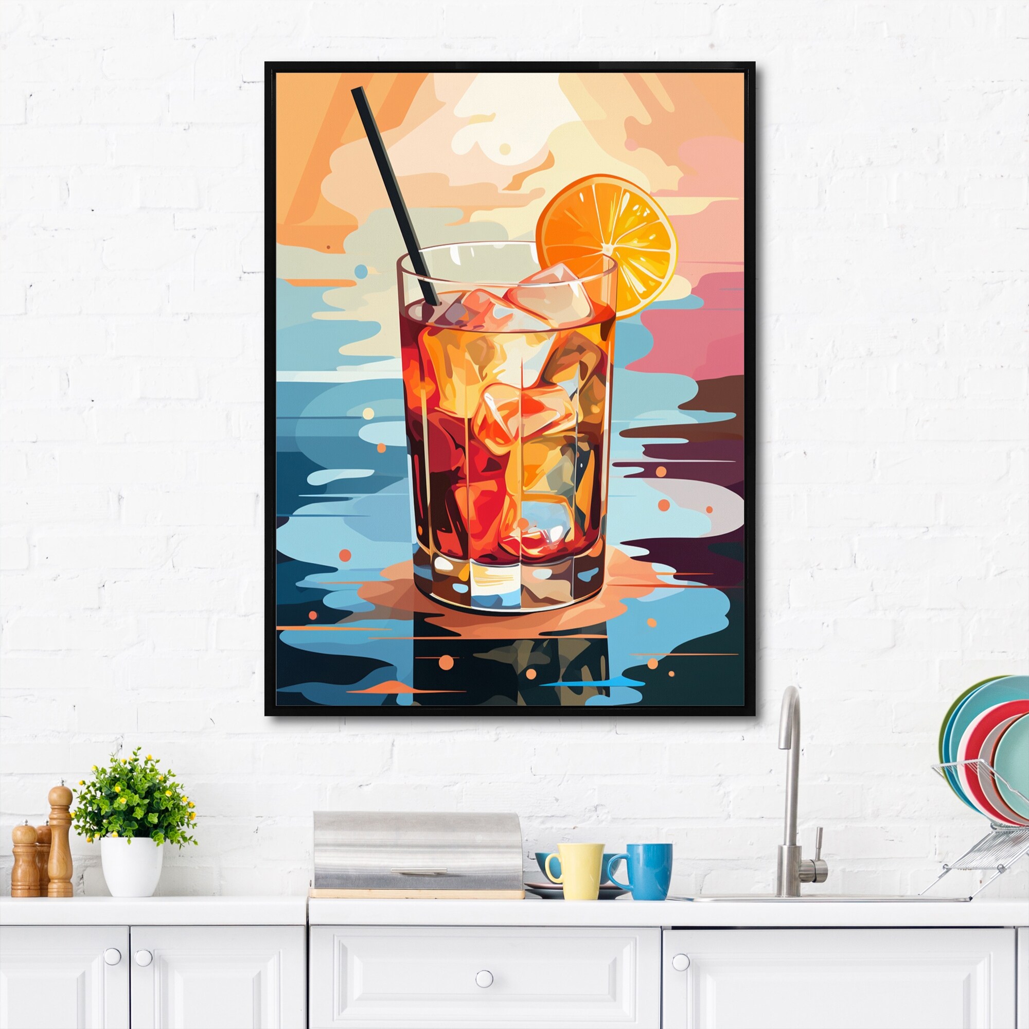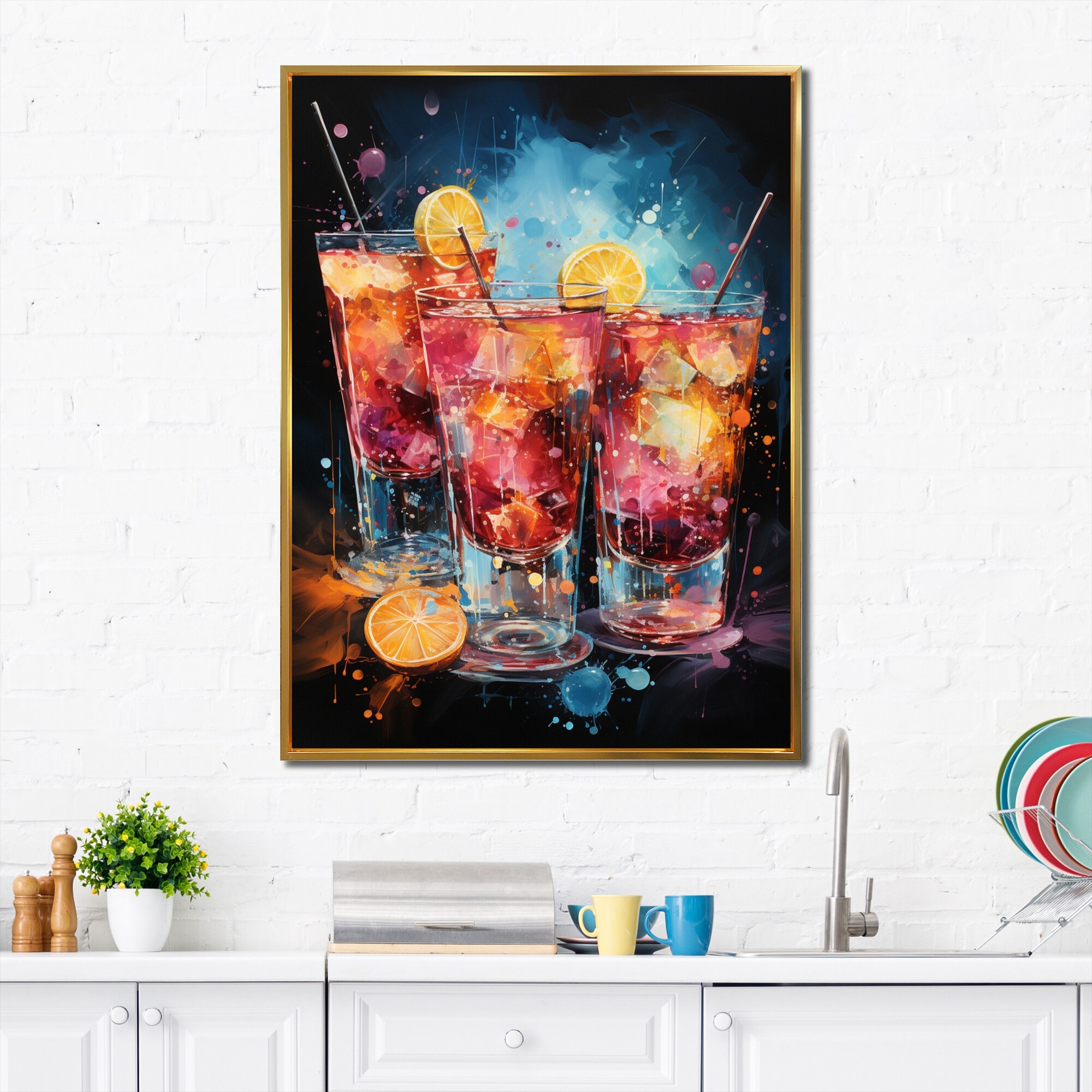 Designart "Drink Minimalistic Cocktail Colorful III" Cocktails Framed Canvas Art Print