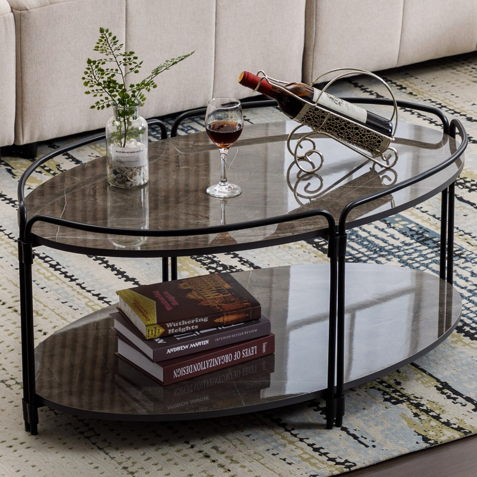 Hausfame Faux Marble Oval Coffee Table Cocktail Table for Living Room - 40 in. L X 24 in. W X 17.7 in. H