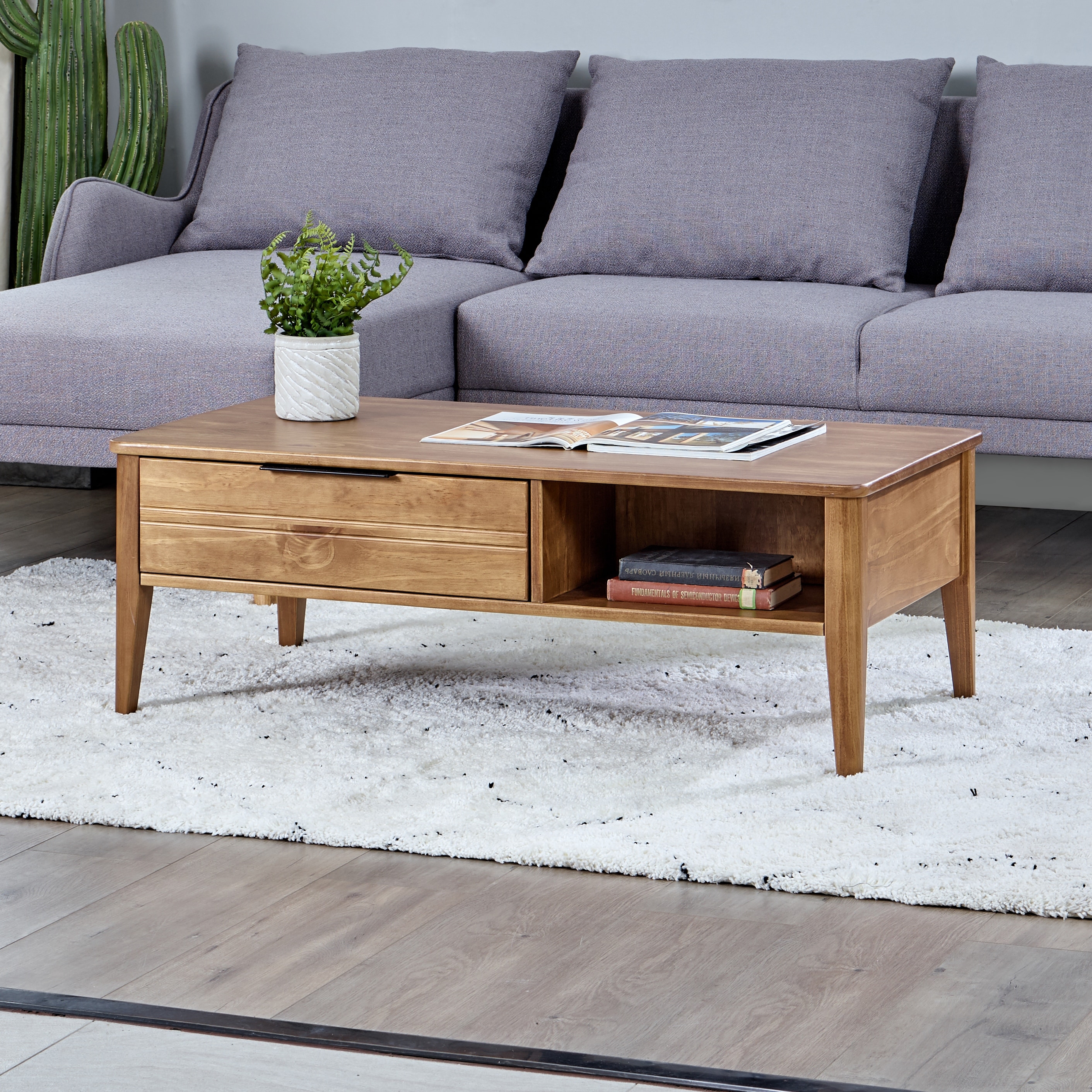 MUSEHOMEINC California Mid-Century Solid Wood Rectangle Coffee Table with Storage Drawer for Living Room/Cocktail Height Design