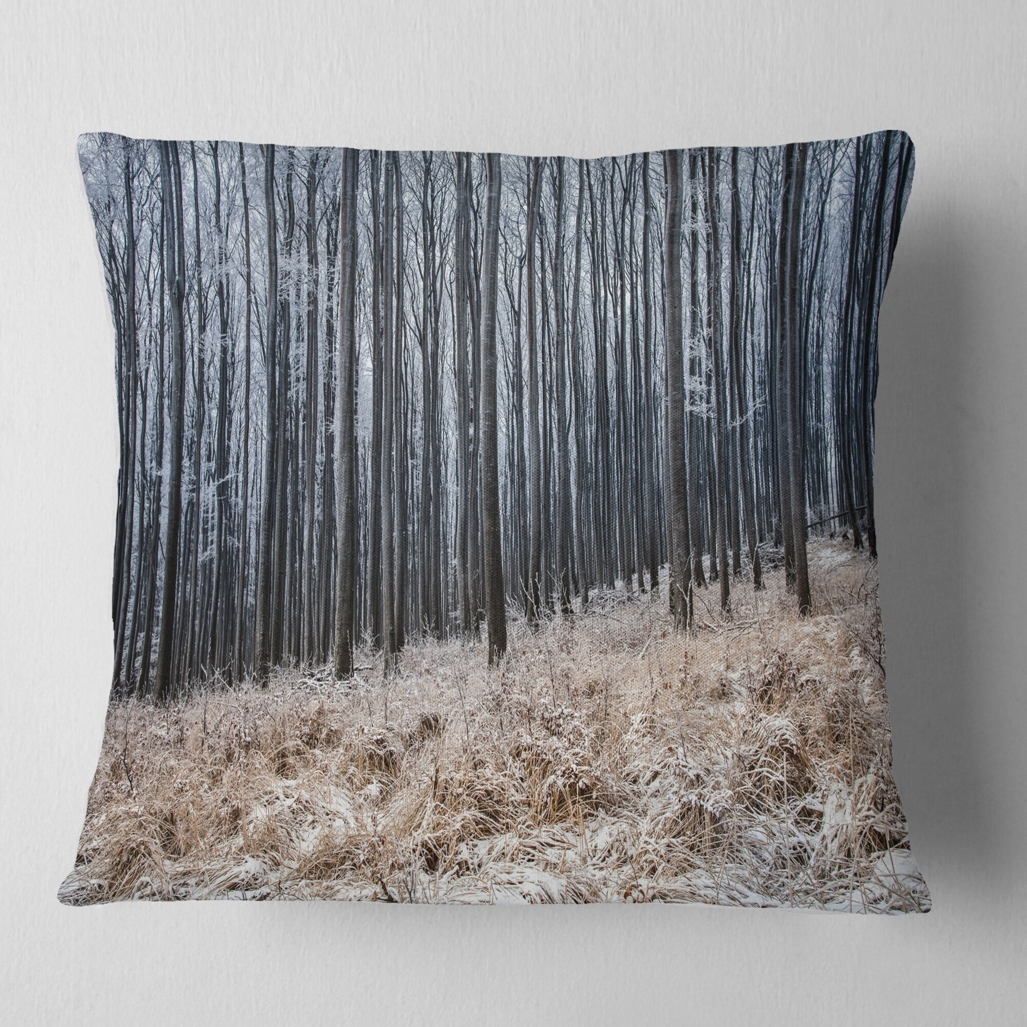 Designart 'Moody Cold Forest with Thick Woods' Forest Throw Pillow