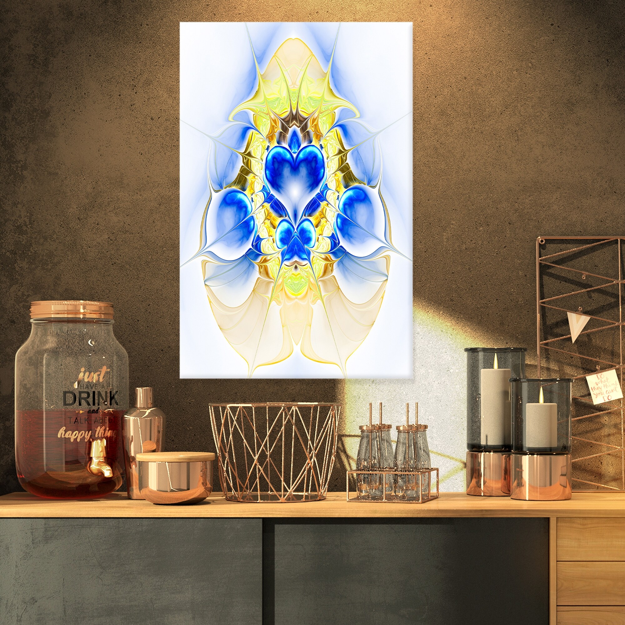 Designart "Cold Extraterrestrial Fractal Heart Blue" Floral Canvas Art Print