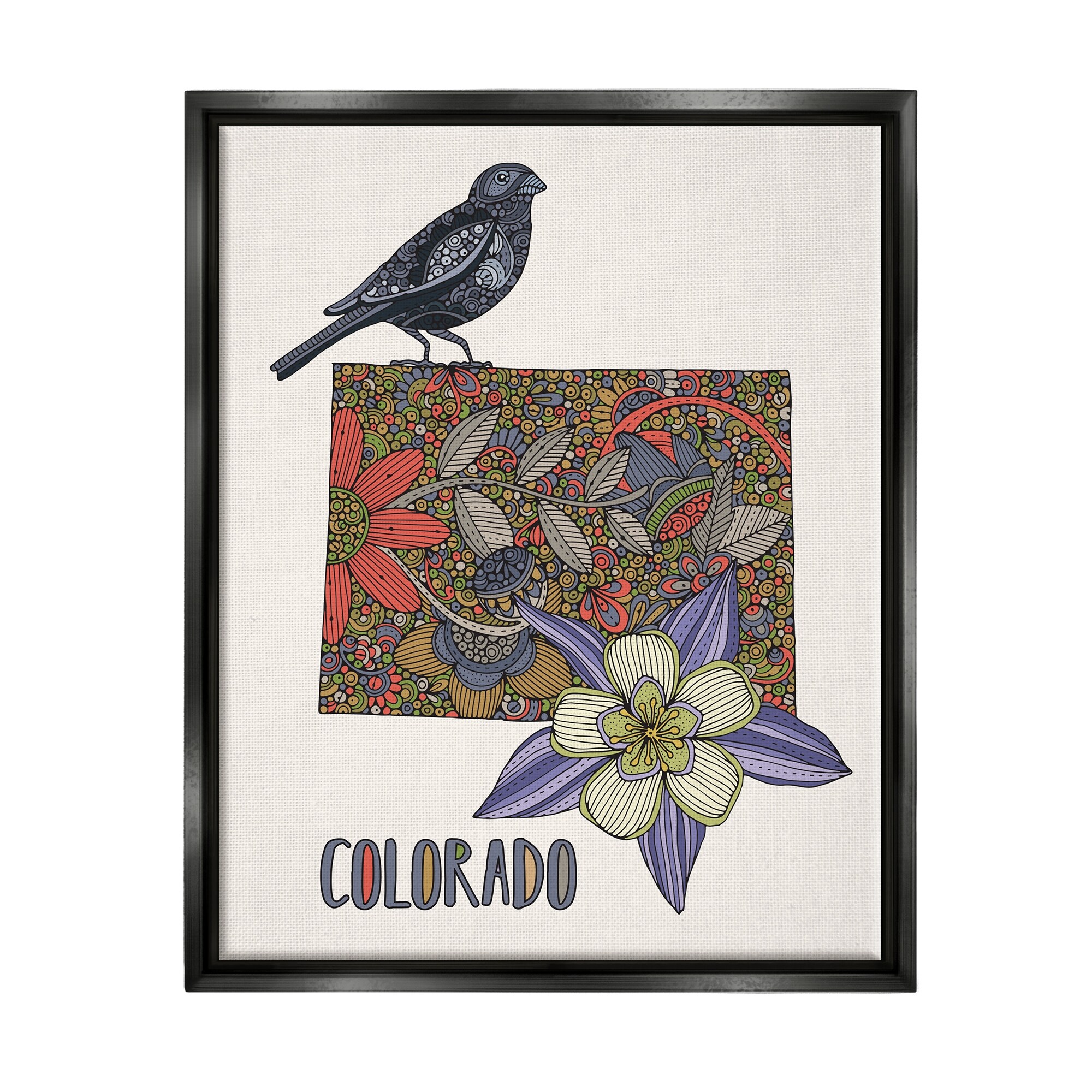 Stupell Industries Colorado State Flower & Bird Detailed Flower Pattern Floater Frame, Design by Valentina Harper