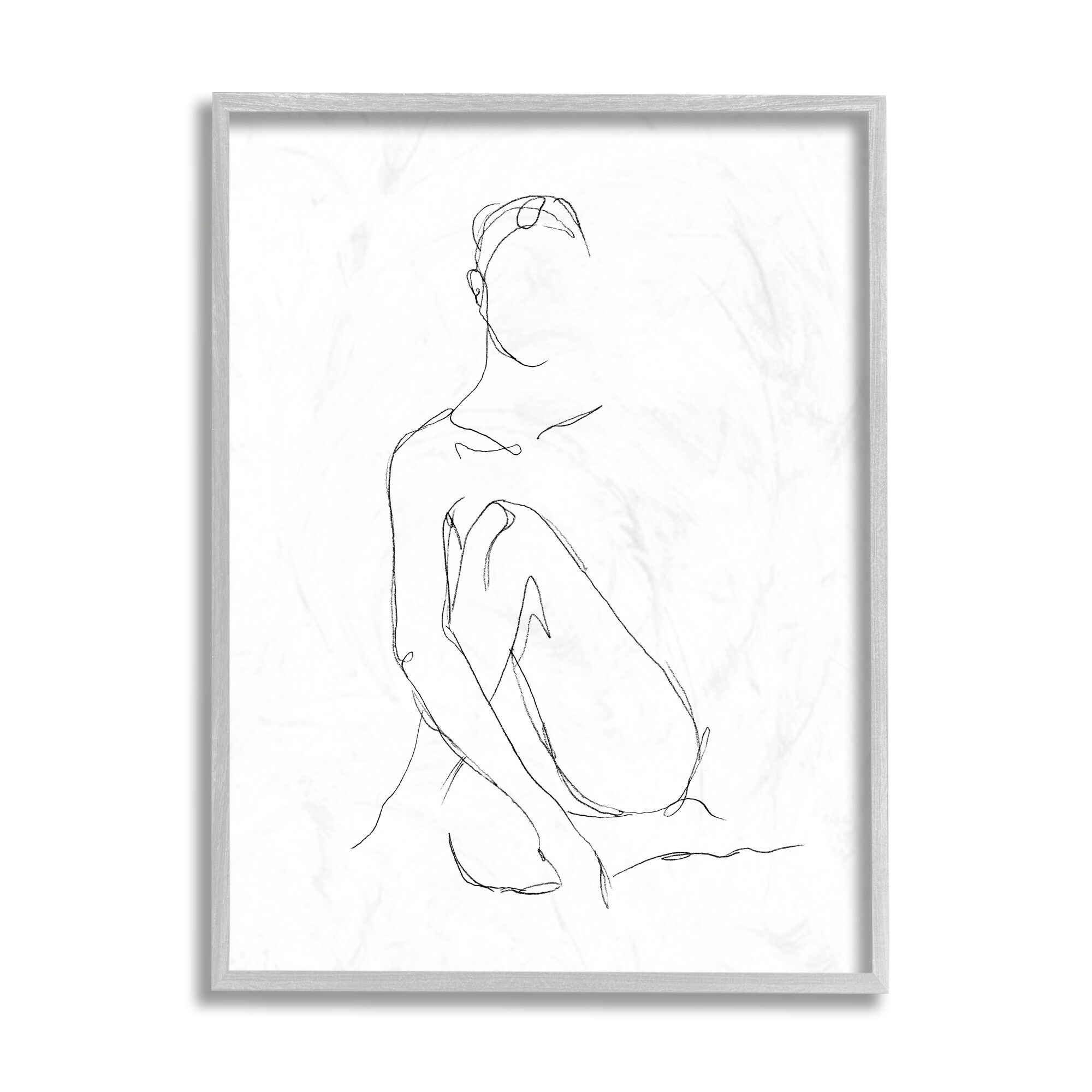 Stupell Industries Minimal Female Figure Drawing Contour Linework Framed Wall Art