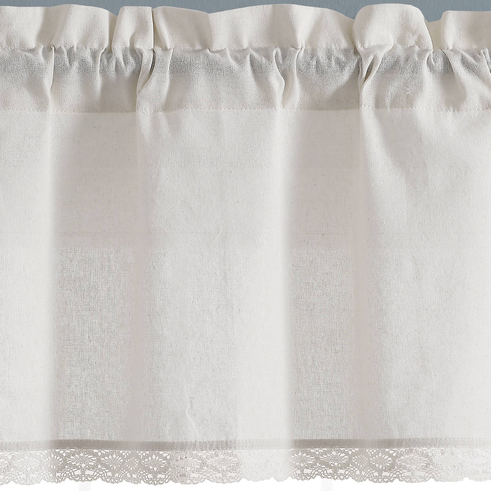 Isabella Lace Rod Pocket with Header Kitchen Curtains - Tier, Swag Pair and Tailored Valance (Sold Separately)