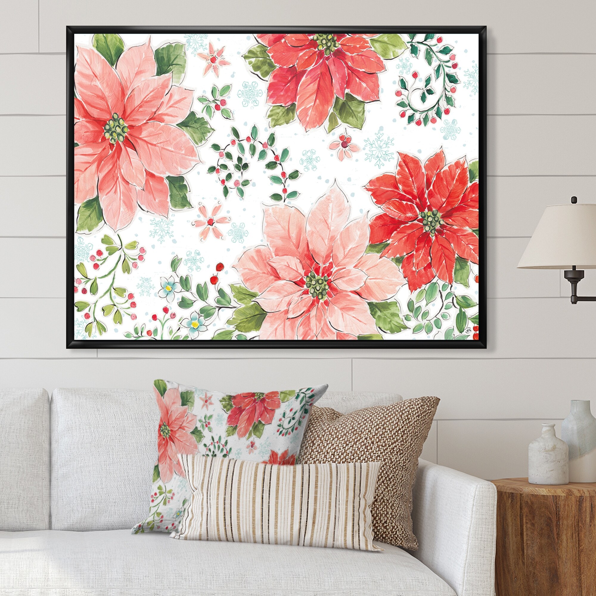 Designart "Country Flower snowflakes I" Farmhouse Framed Canvas - Pink
