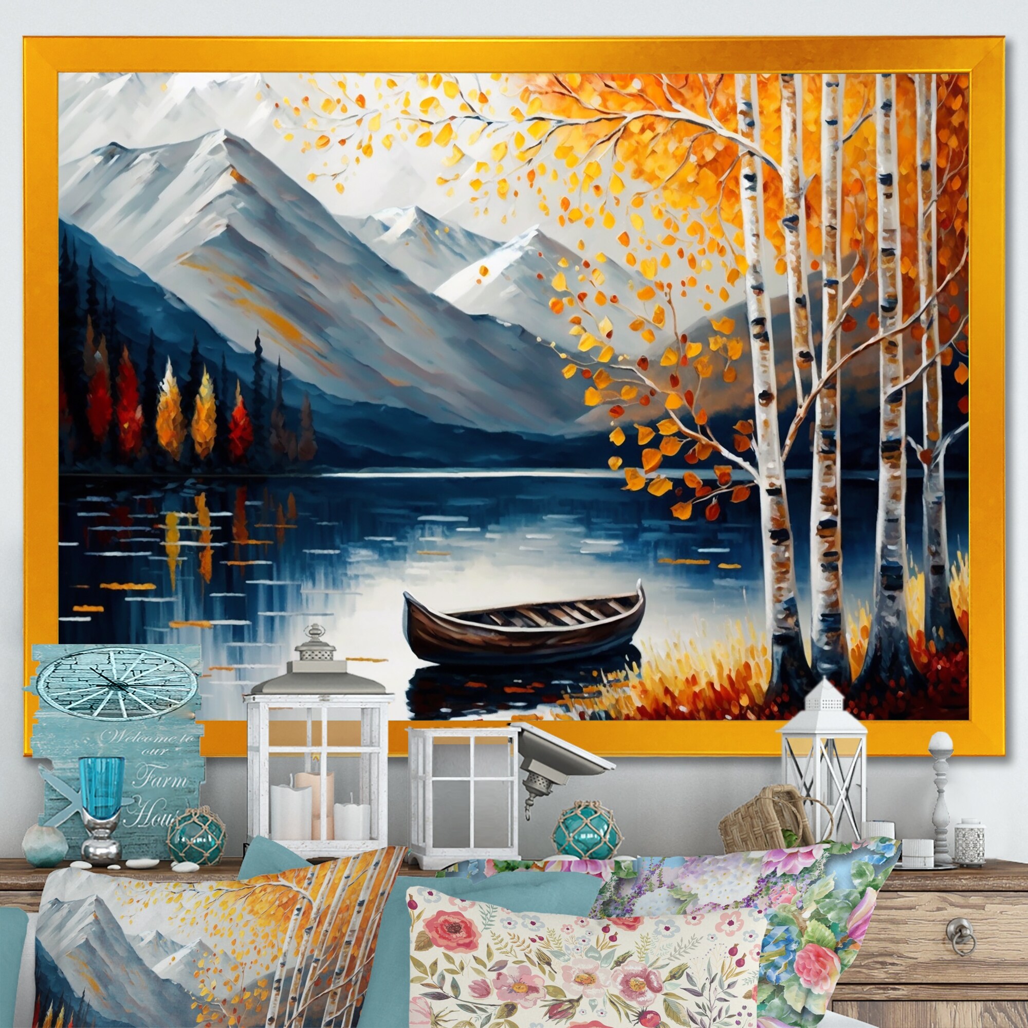 Designart "Canoe On A Lake in Fall I" Farmhouse / Country Framed Art Print