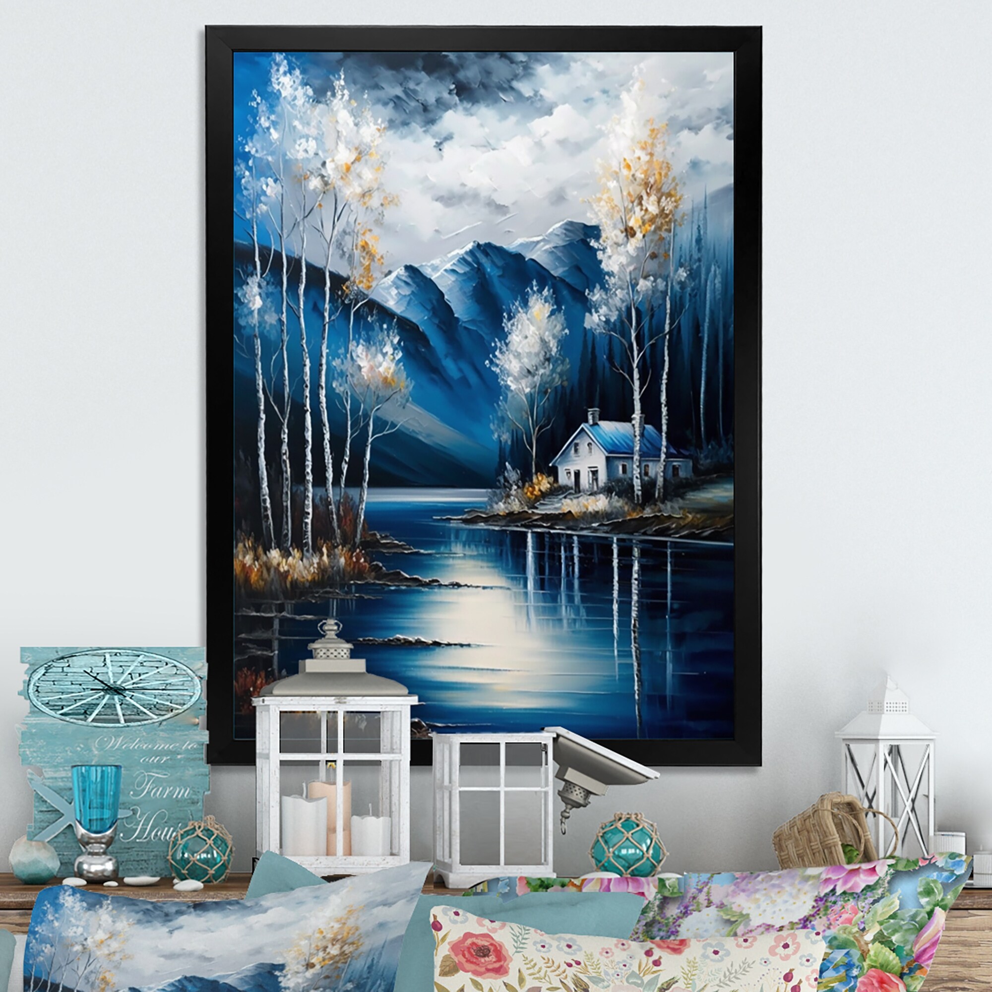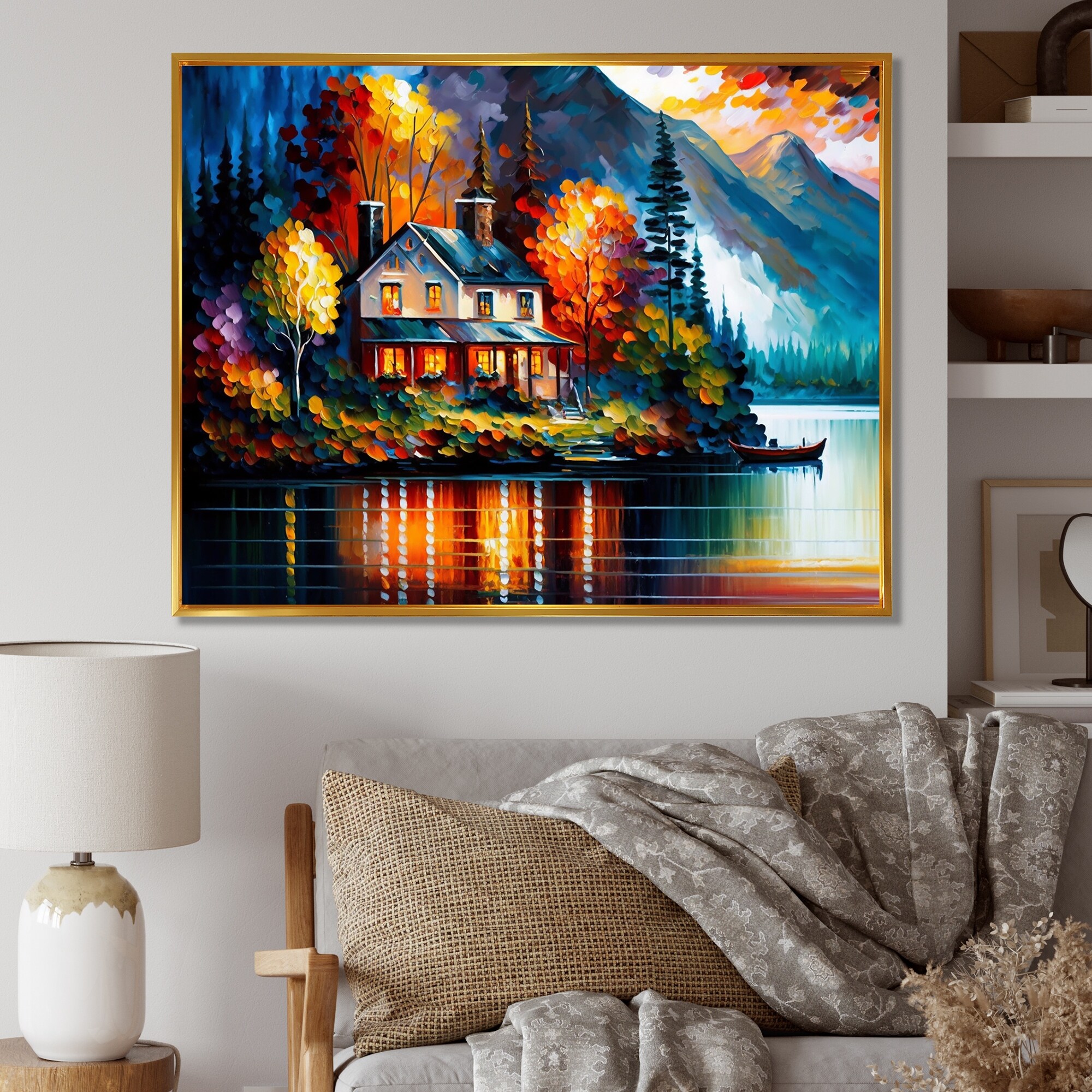Designart "Colorful Lakehouse By the Lake V" Farmhouse / Country Framed Canvas Art Print